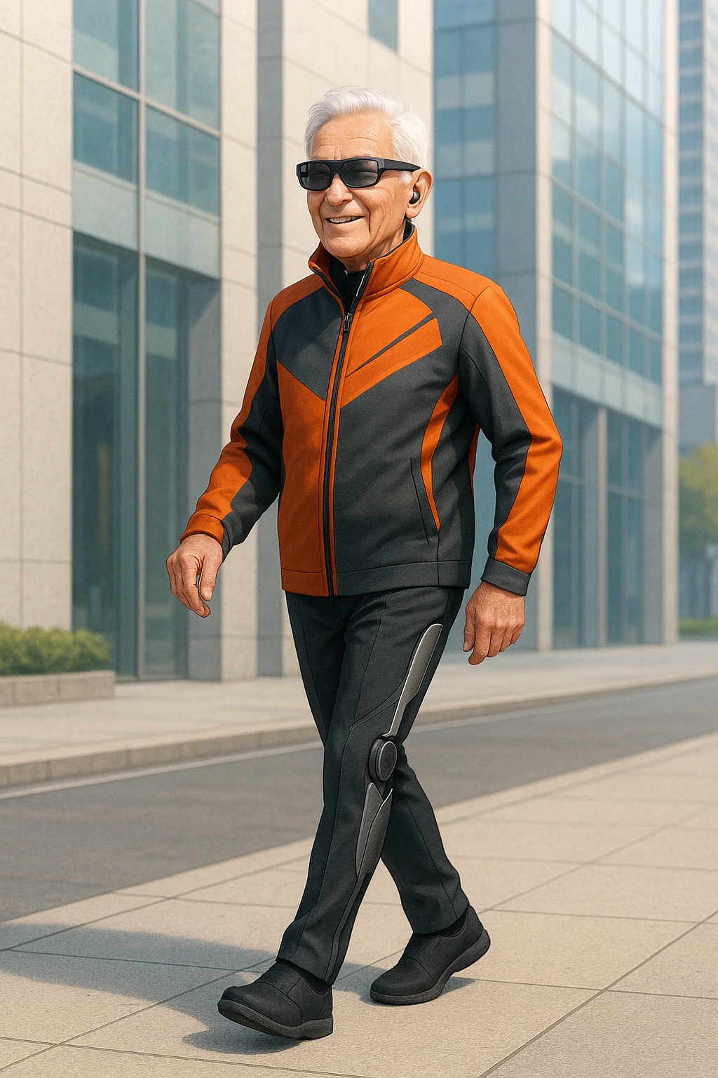 보청기, 스마트 안경, 보조기기를 착용한 80대 몸이 불편하신 노인의 모습이다.