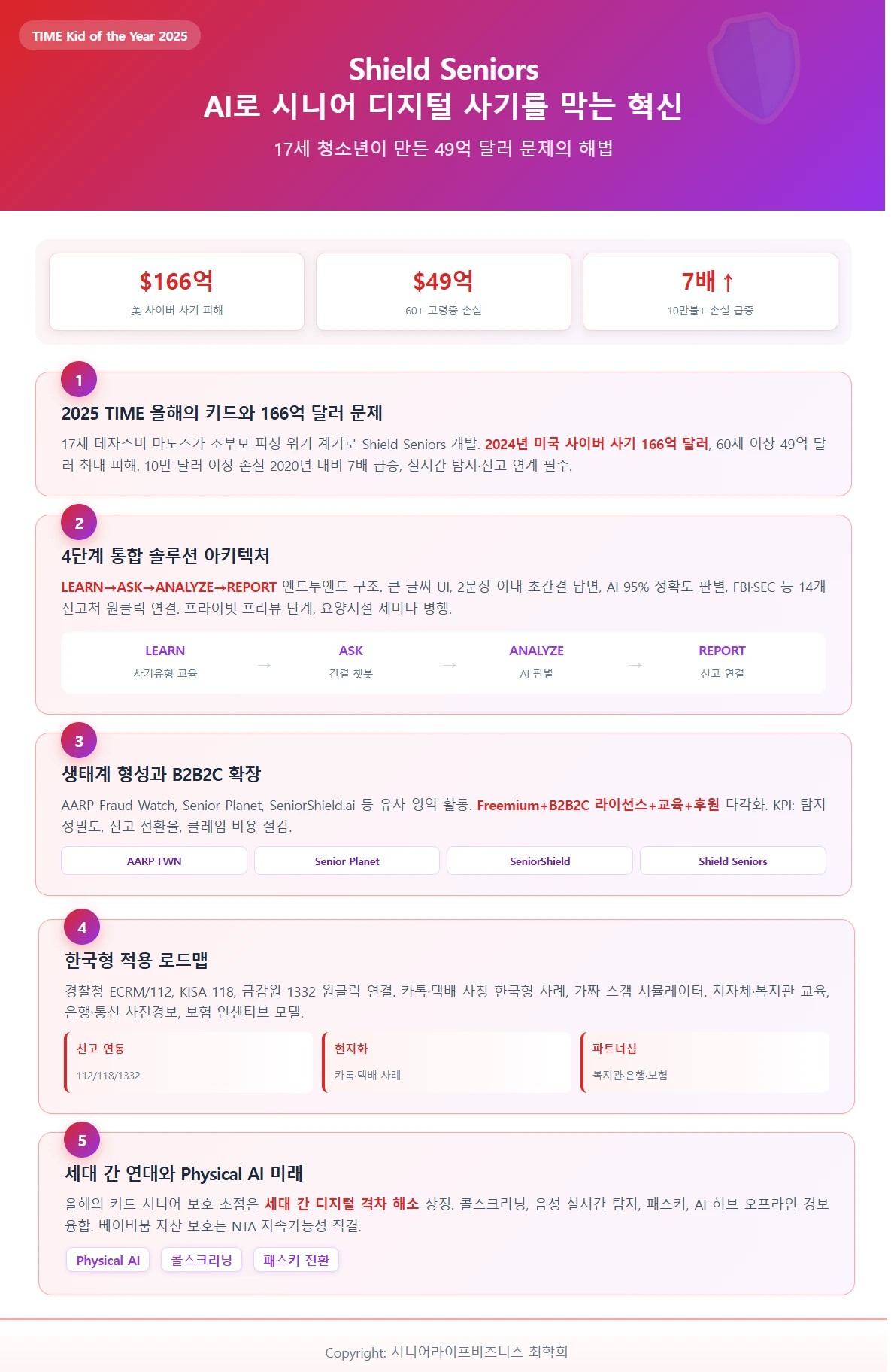 사랑하는 조부모의 피싱 위기를 계기로 Shield Seniors를 개발했다.
