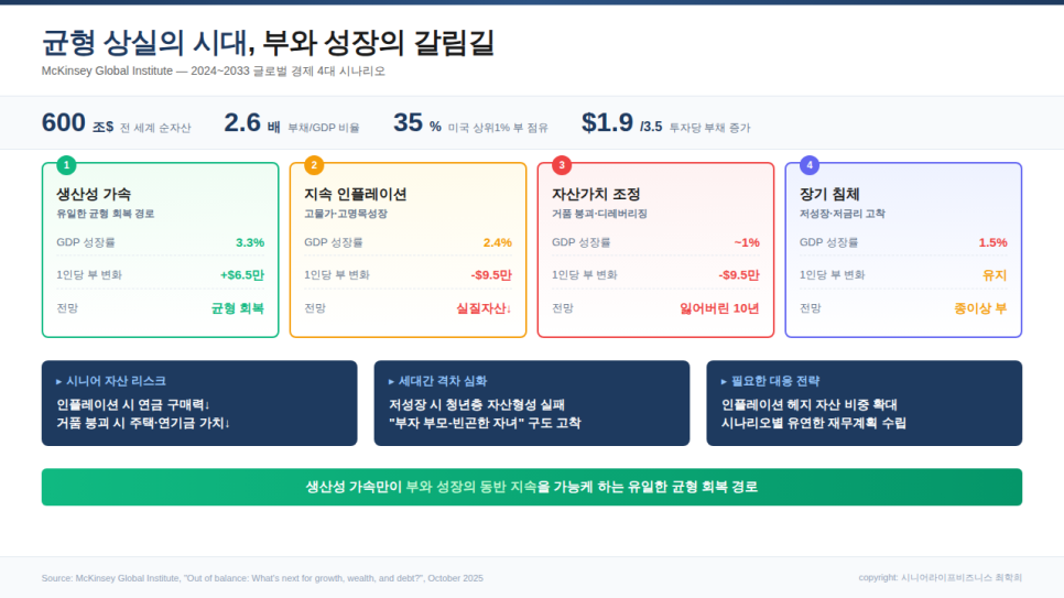 맥킨지의 4가지 시나리오가 시니어에 주는 시사점은, 금리 물가 불확실성에 대비하라는 것이다.