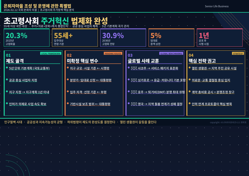 은퇴자마을 조성 및 운영에 관한 특별법이 의결되었다.