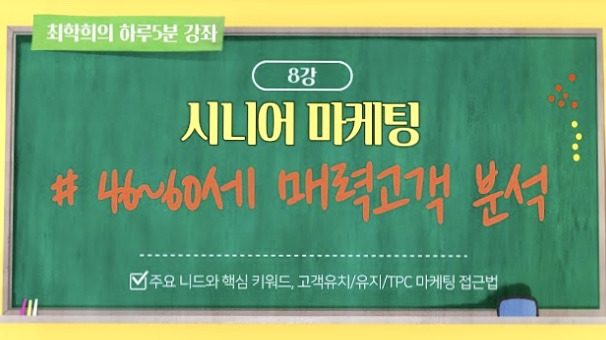 매력고객 세분화 첫번째 그룹에 대한 마케팅 분석과 대응법을 살펴봅니다. 주요 내용 46세~60세 & 생활비여유 Top 20% 세분화 그룹 분석 주요 관심사와 마케팅 대응법https://youtu.be/xug3qjLF_e0