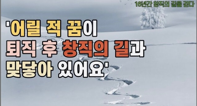16년간 창직의 길 중 가장 행복했던 순간은?그 시간은 어릴적 꿈과 연결되어 있습니다.글과 이미지 그리고 음악을 통해 1,000편의 스토리필름을 만들어 가고,그 속에서 사람들의 삶을 되돌아보고 변화의 동기를 만드는 일을 소개합니다.https://youtu.be/vsoN3K_4utE