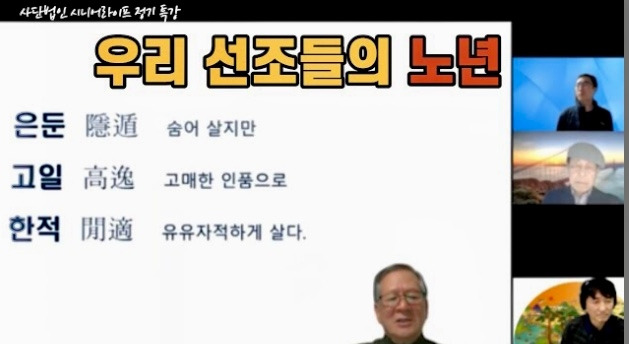우리 선조들의 노년의 모습은 어땠을까요?사단법인 시니어라이프 노준식감사님께서 '은둔, 고일, 한적'이라는 예술적인 삶을 통해 소개합니다.달을 바라보며 삶을 되돌아보고 감사하는 그런 시간이 되길 소망합니다.https://youtu.be/3TojNDCznBU