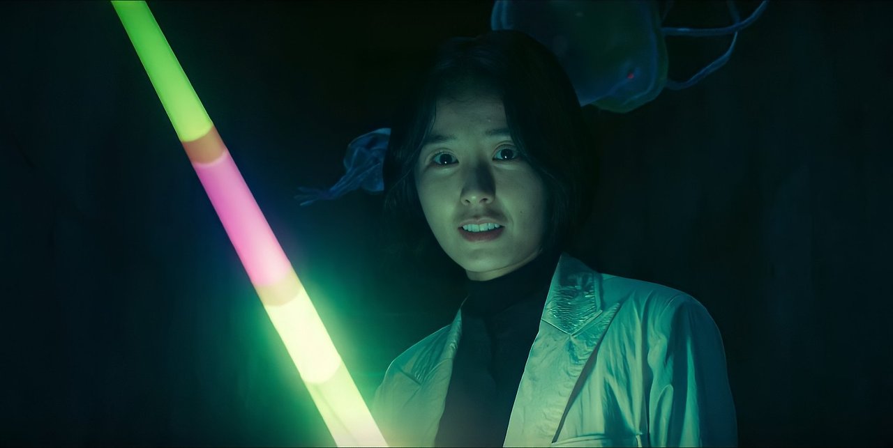<보건교사 안은영>은 아주 이상한 히어로다. 드라마는 정신없이 발랄한 고등학생들의 모습과, 피곤한 인상의 헝클어진 검은 머리의 여자를 대조적으로 보여준다. 뭔가 이상하다. 히어로의 힘의 상징인 무기, 강철 같은 몸, 그런 것은 없다. 안은영은 조악한 플라스틱 칼을 들고, 온몸에는 젤리들에게 물린 상처가 있어서 언제나 목까지 올라오는 폴라티를 입는다. 영웅들이 으레 가지는 이상할 정도로 투철한 책임감도 없다. 습관 같은 한숨을 내쉬며 사건을 해결한다. 전 지구적 재앙이나 세계평화와 미래까지 신경 쓸 겨를은 없다. 그저 눈앞에 있는 작은 불행들을 헤치면서 살아갈 뿐이다. 명성과 응원, 멋진 활약상, 그건 먼 얘기다. 은영이 싸우는 세상은 외롭고 화려하다. 누군가 그걸 볼 수 있다면 그녀를 영웅으로 치켜세울 수도 있지만, 안타깝게도 지금까지 그런 사람은 없었다.