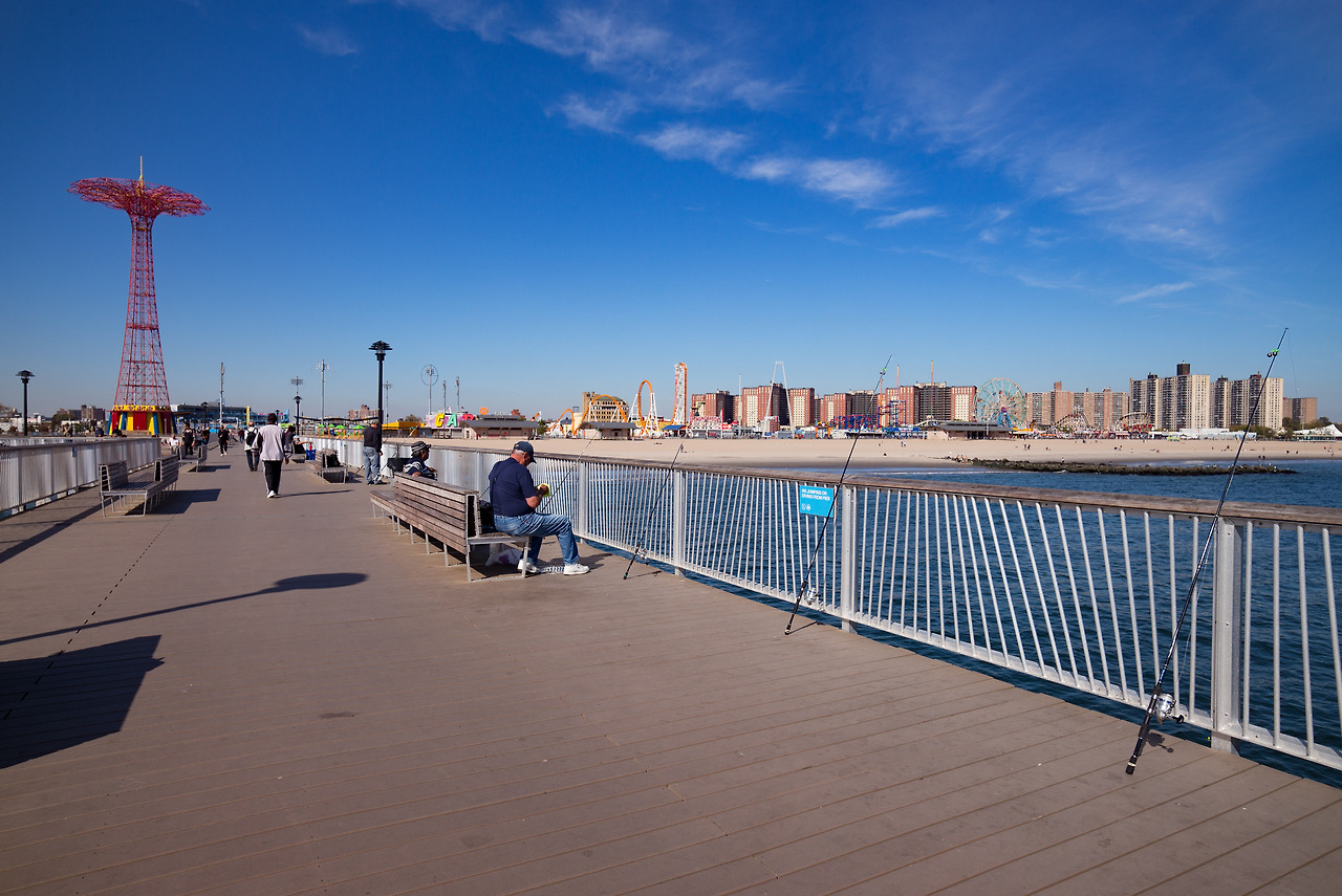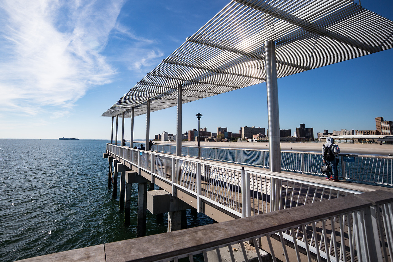 Pier의 끝에 도달하면 이렇게 경치도 구경하고 데이트도 하고 낚시도 하고 세계적인(비꼬는 게 아닌) 코니 아일랜드의 명성도 다시 확인할 수 있는 그늘막(?)도 있다. 확실히 한적하게 여유로움을 즐길 수만 있다면 꽤 운치 있는 장소라고 확신한다. 물론 그런 장소야 세상엔 많지만 자유의 여신상이 서 있고, 마천루가 즐비한 뉴욕에서 불과 한 시간 거리에 이런 휴양지가 있다니 그것도 기분이 오묘하다. 자전거를 끌고 집으로 돌아갈 나는 좀 불안 불안했지만.