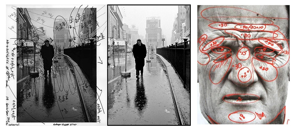 위 사진에서 알 수 있듯, 필름 암실 시절에 만들어진 사진들 역시 최종 인화물의 완성도를 높이기 위한 수정은 늘 이루어졌다.