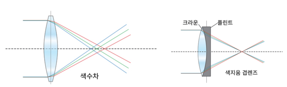 [APO 설계란 빛의 3원색인 Red, Green, Blue의 파장이 각각 다르기 때문에 초점면에 발생하는 수차를 최대한 줄였다는 것을 뜻합니다. 위 그림에서 확인할 수 있듯 APO 설계는 빛이 촬상면에 분산되지 않고 모이기 때문에 보다 선명한 화질을 얻을 수 있습니다.]
