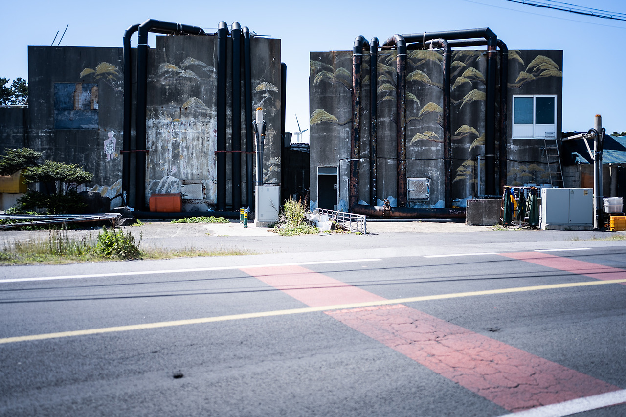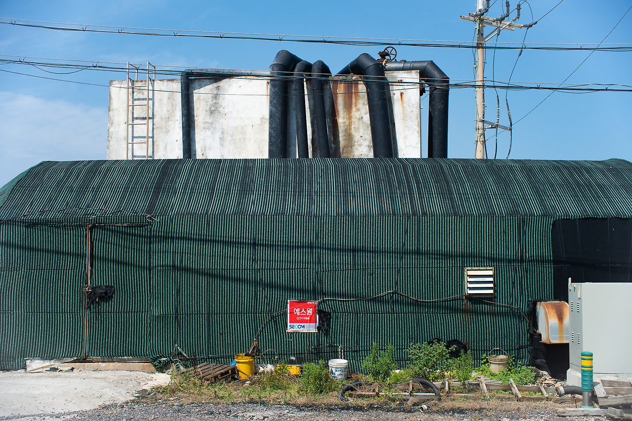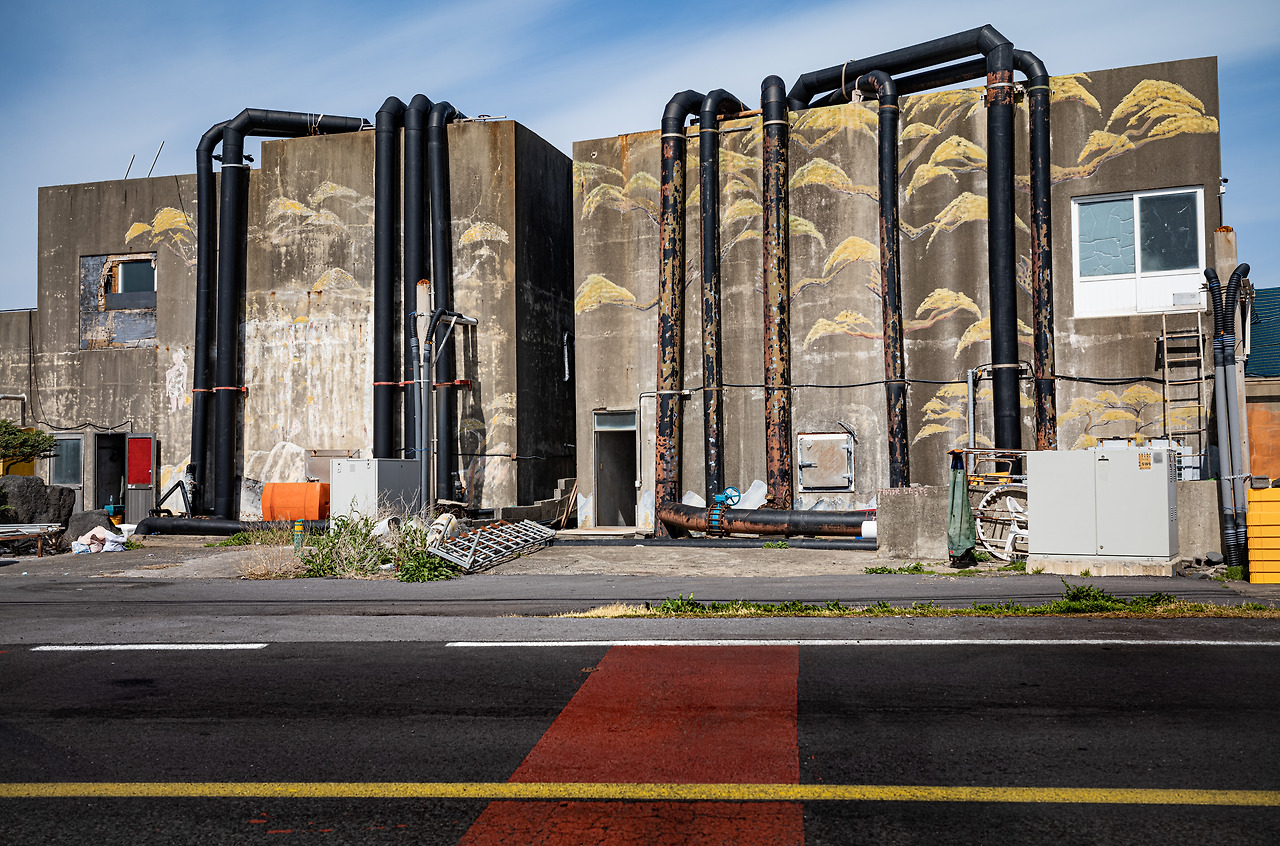 제주의 해안 일주도로를 차로 달리다 보면 동네동네마다 양식장이 줄지어 늘어선 곳들과 몇 번 맞닥뜨리게 된다. 굵은 파이프가 화려한 벽면을 따라 얼기설기 얽혀있는 모습을 보자면 이국적이라고 해야 할까? 낯선 무엇을 볼 때 느껴지는 두근두근함이 있다.