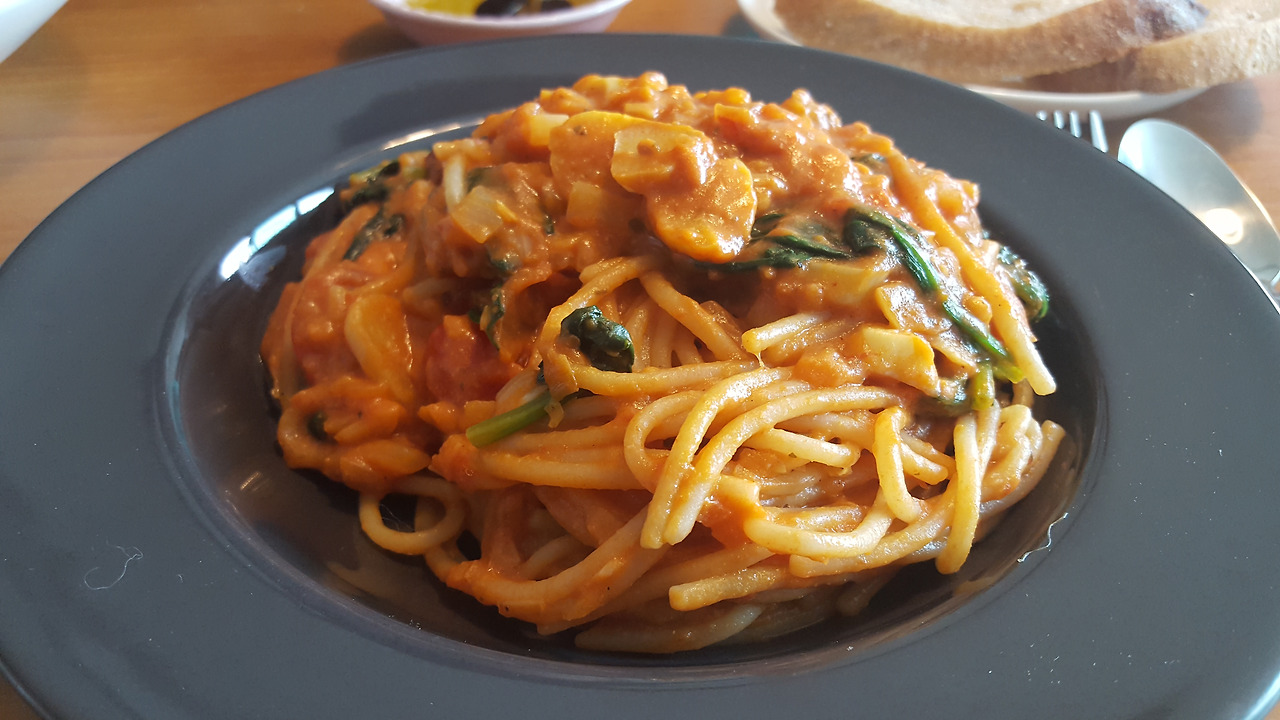 두유와 시판 비건 토마토소스로 만든 현미 파스타. 시금치를 왕창 넣었는데 숨이 죽어 잘 보이지 않는다. 그래도 남편은 맛있다며 찹찹. 늘 그렇듯이 주말에는 파스타다.