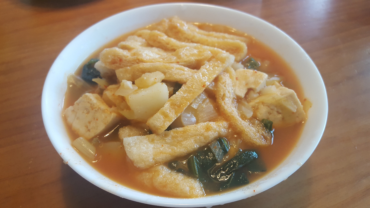 남편이 끓인 유부 고추장찌개. 시장에서 국산 두부를 파는 곳이 있는데, 두부를 살 때마다 유부를 한 봉지씩 사 온다. 유부는 뜨거운 물에 넣어 기름을 쫙 뺀 다음 찌개에 마지막으로 올려야 맛도 좋고, 찌개에 기름도 뜨지 않는다. 불순물도 제거되고. 남편은 고추장찌개 전문이다. 나는 된장찌개를 좋아하는 입맛이고, 결혼 전에는 고추장찌개를 집에서 끓여먹은 적은 없는데. 남편은 고추장찌개를 칼칼하게 잘 끓인다. 출근하지 않는 주말 아침에 는 그가 찌개를 끓이는데. 예전에는 돼지고기를 잔뜩 넣었지만, 채식을 하는 나를 고려해서 유부를 넣어주었다. 꽤 맛있다.