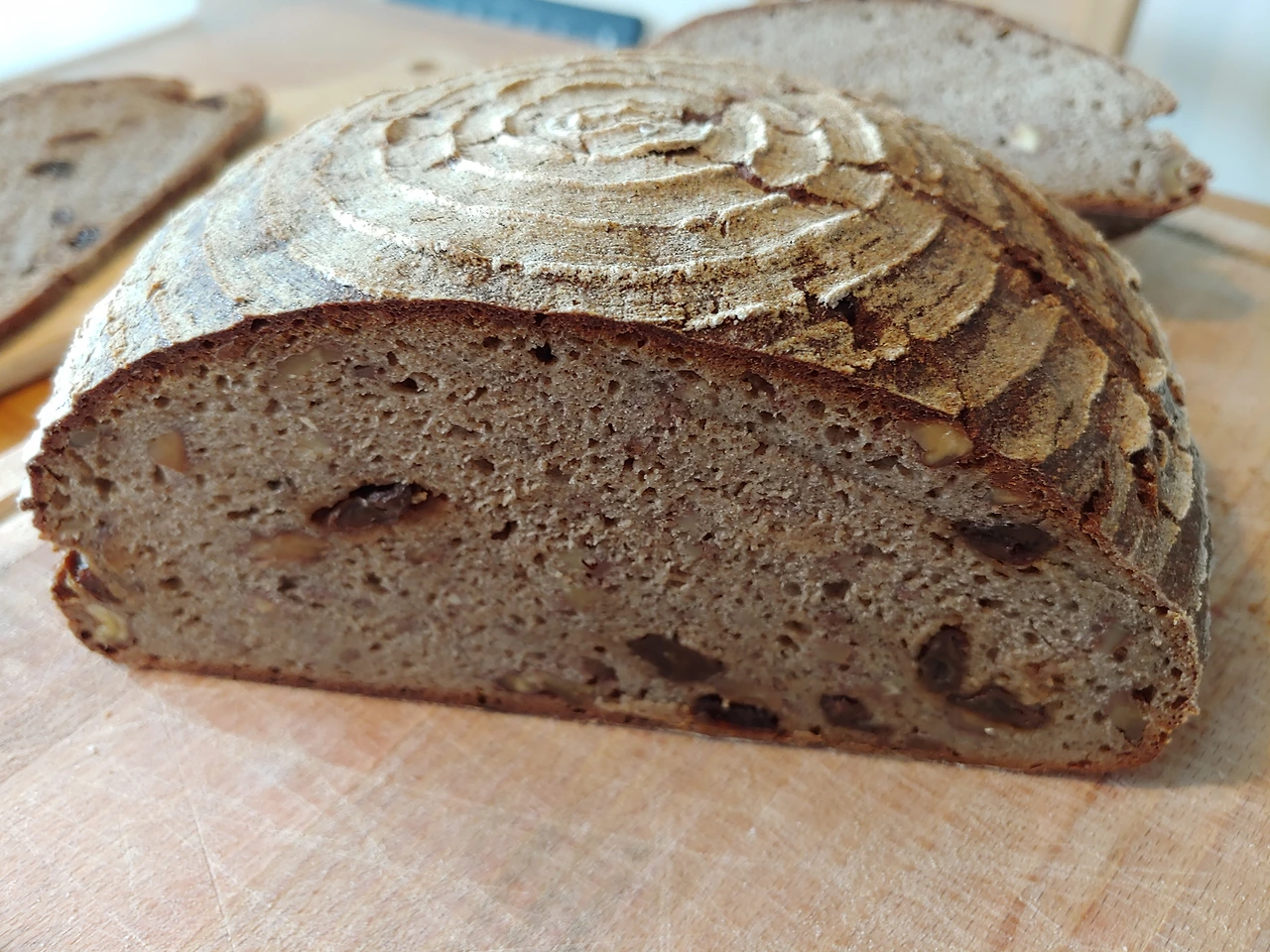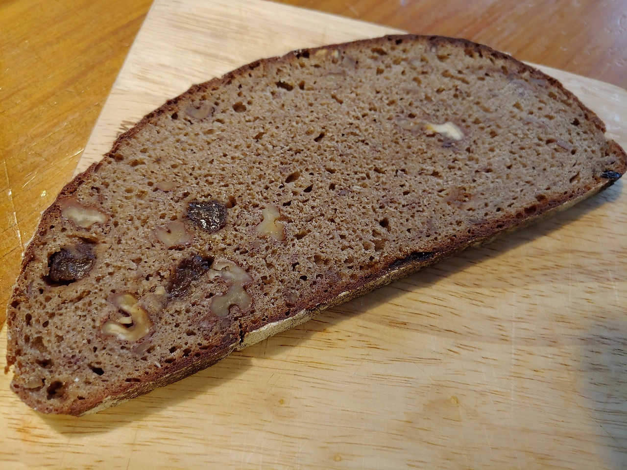 밀도가 높기 때문에 1센티 미만으로 얇게 잘라먹는다. 글루텐이 없어서 기공이 크지 않고, 밀가루 사워도우보다 발효 시간이 짧은 것이 장점이다. 조금만 먹어도 배가 불러서 다이어트에도 좋다. 화장실에도 잘 가고. 반죽도 별로 할 필요 없다. 호밀 발효종을 리프레쉬시키는 수고만 한다면 만들기 쉬운 빵이다. 아직 프로 베이커들처럼 호밀빵 표면 크랙이 잘 나오지 않지만~ 맛은 나쁘지 않다.