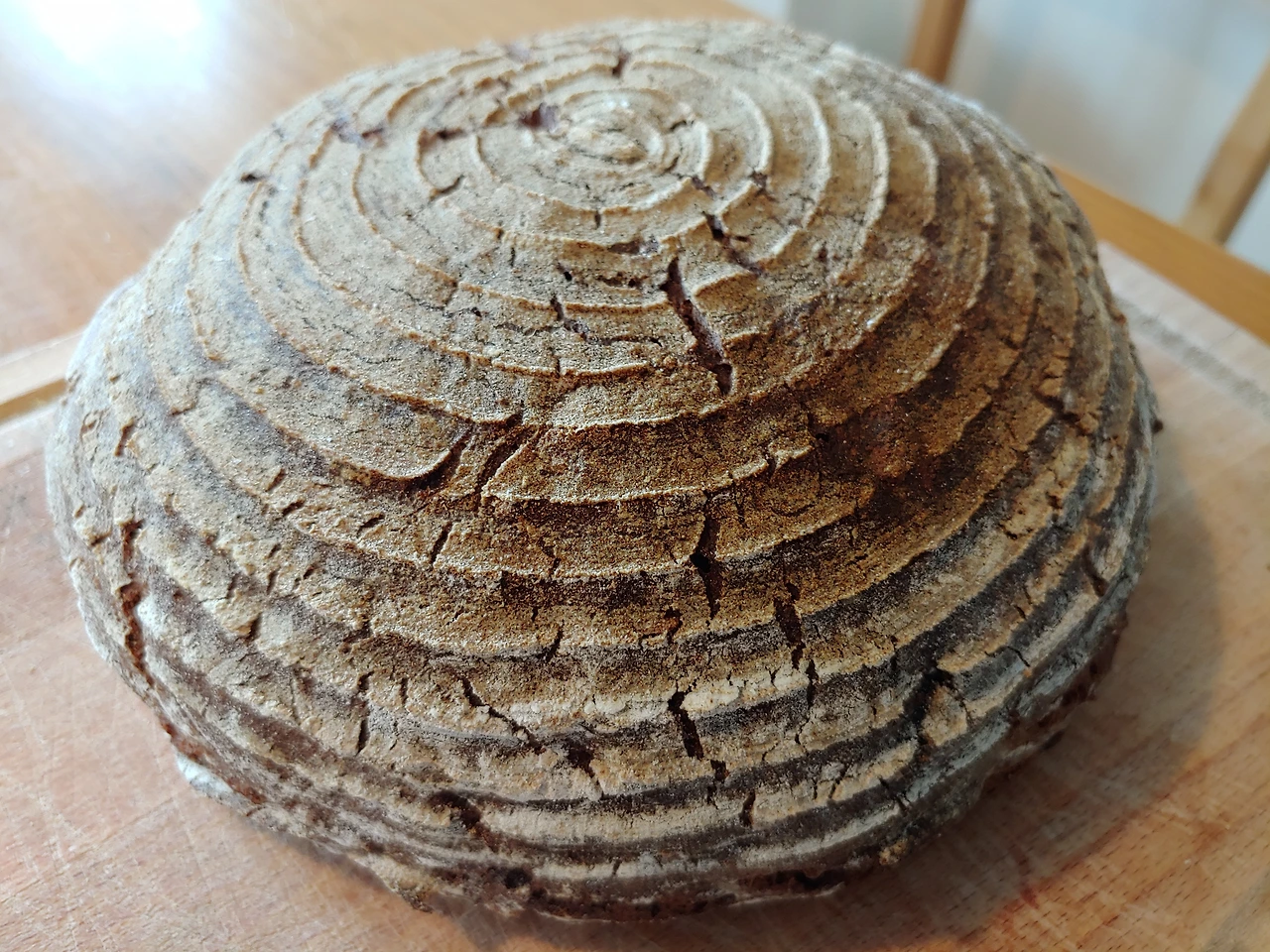 호밀 사워도우가 잘 부풀면 둘을 섞고 435그램의 호밀가루와 215그램의 뜨거운 물을 섞어서 30분간 발효시키고 인스턴트 이스트 2그램을 섞어서 30분을 또 발효시킨다. 30분이 지나면 빠르게 모양을 만들어 반느통에 앉혀서 30분 기다리면 끝.