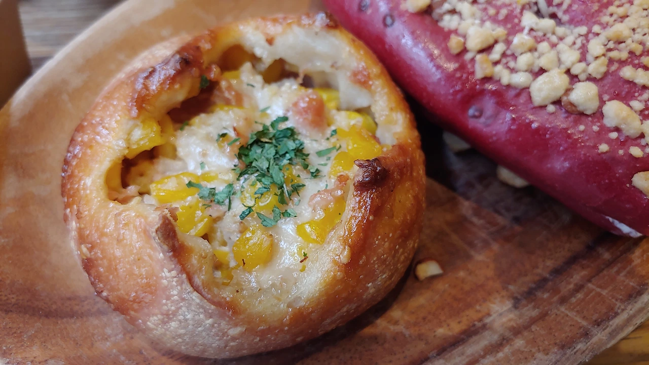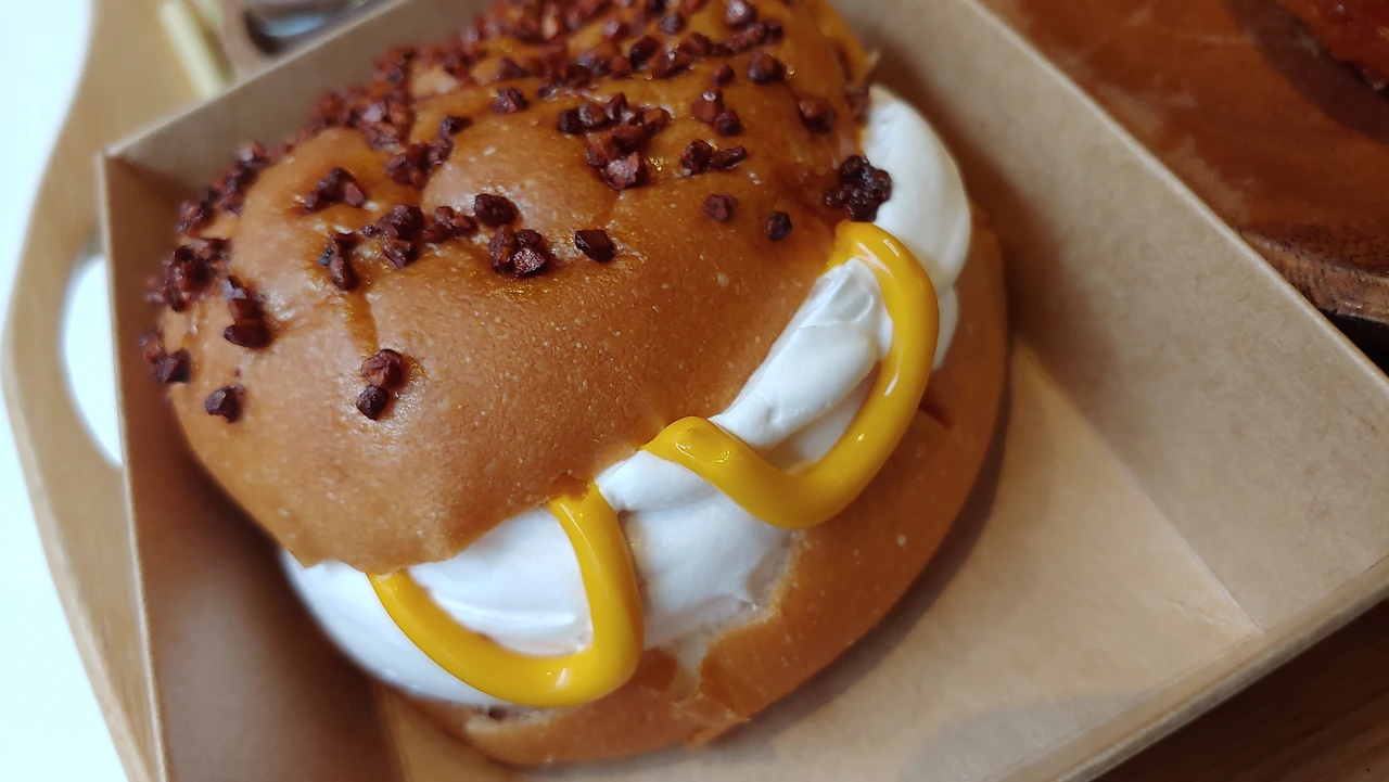 신상품인 비건크림빵. 비건 생크림과 체다치즈 소스의 조화가 훌륭하다.