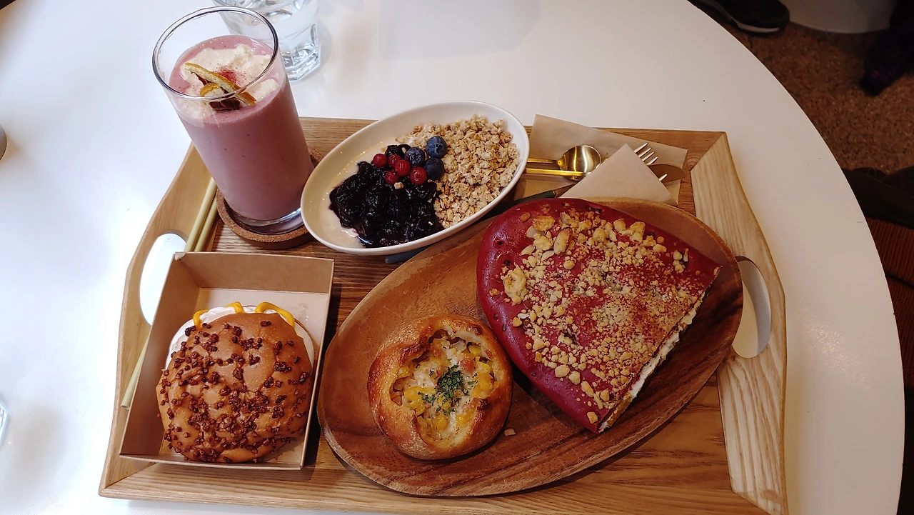 남편은 딸기비거트를 음료로 시켰고, 나는 블루베리와 오트밀그래놀라가 올려진 비거트를 주문했다.