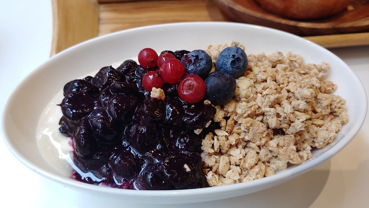 그래놀라와 블루베리를 얹은 요거트. 이건 나도 집에서 자주 해먹는 거라 익숙했다.
