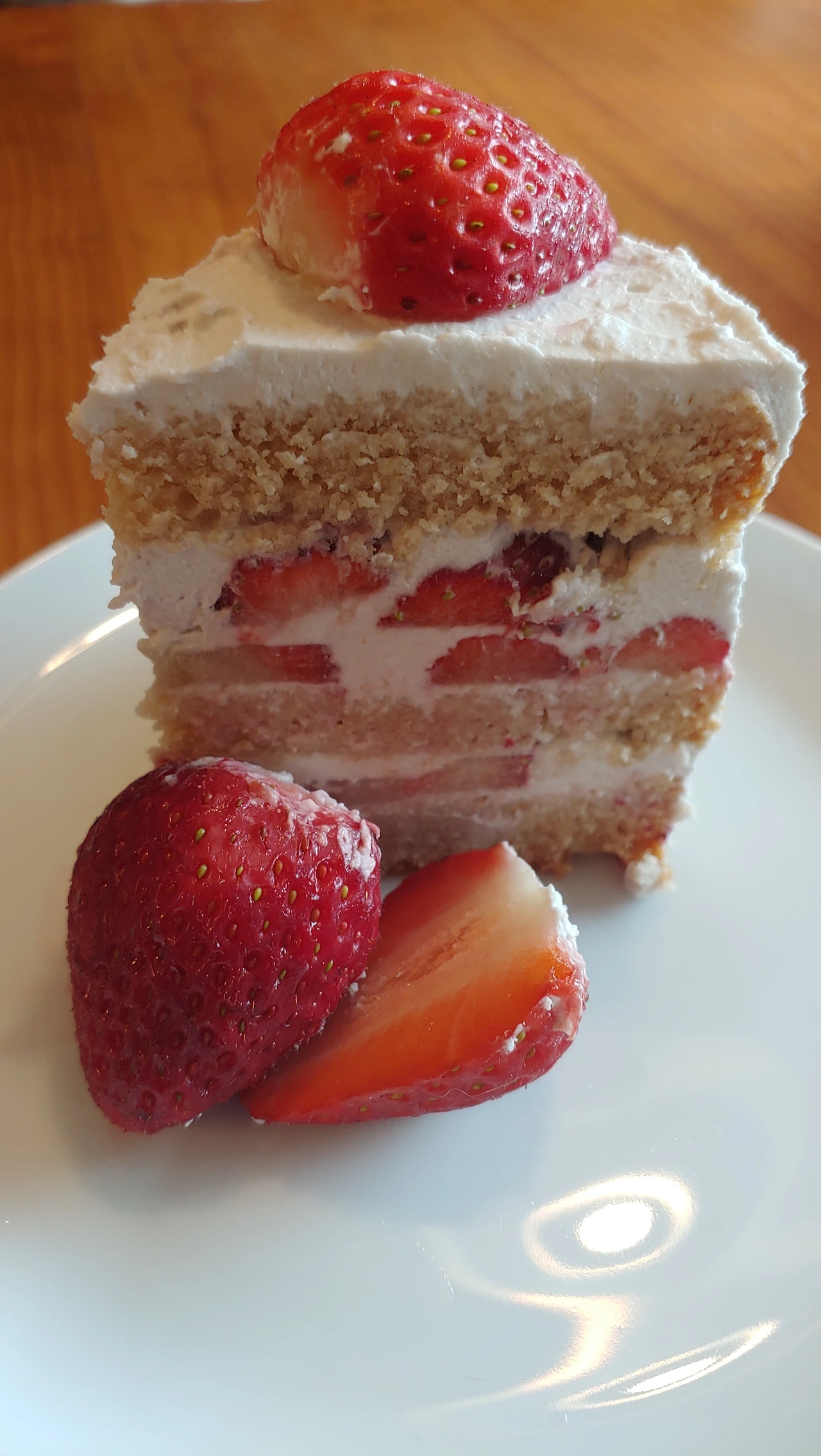 몇 주전 만든 비건 딸기 생크림 케이크.