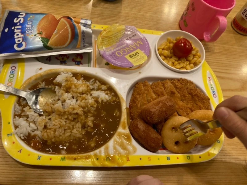 코코이찌방야는 첫째가 대여섯 살 적에 와본 곳이다. 그때는 지금 2살인 둘째는 없었다. 아이가 대여섯 살이면 엄마가 카레밥을 비벼 줘야 하고 음료도 챙겨줘야 하는 등 손이 많이 간다. 이제 초등학생이 된 첫째는 아이 앞에 수저 포크 등 세팅만 해주니 알아서 카레에 밥도 비벼먹고 포크로 스스로 음식을 먹는다. 기특하다. 그동안 크느라 수고 많았어 우리 첫째!