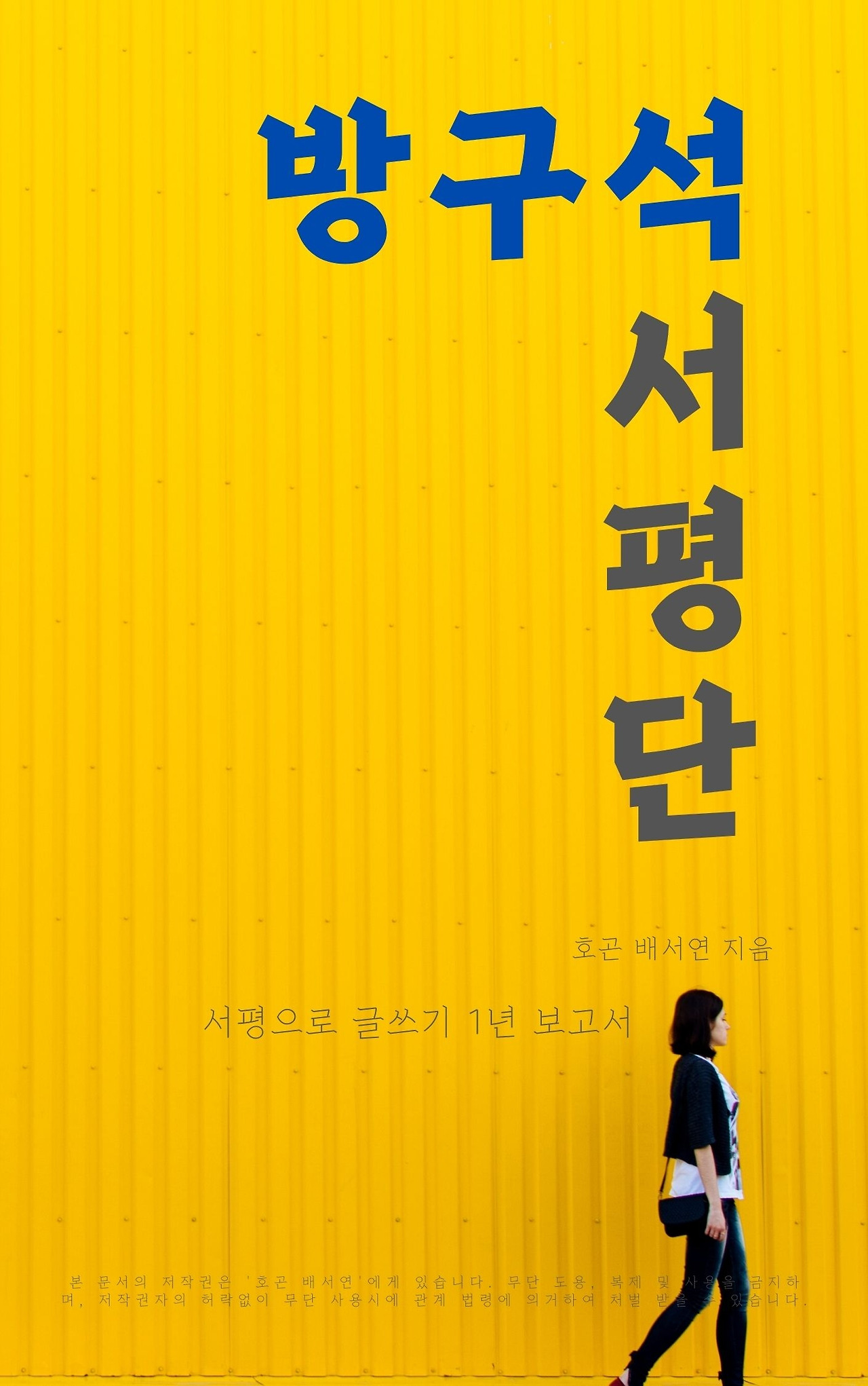 본 문서의 저작권은 ‘호곤 배서연’에게 있습니다. 무단 도용, 복제 및 사용을 금지하며, 저작권자의 허락 없이 무단 사용 시에 관계 법령에 의거하여 처벌받을 수 있습니다.