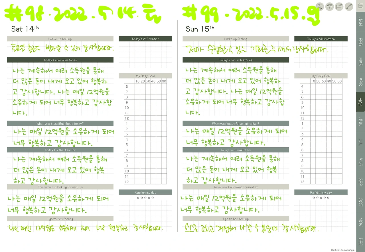 나는 매일 12억원을 소유하게 되어 너무 행복하고 감사합니다.