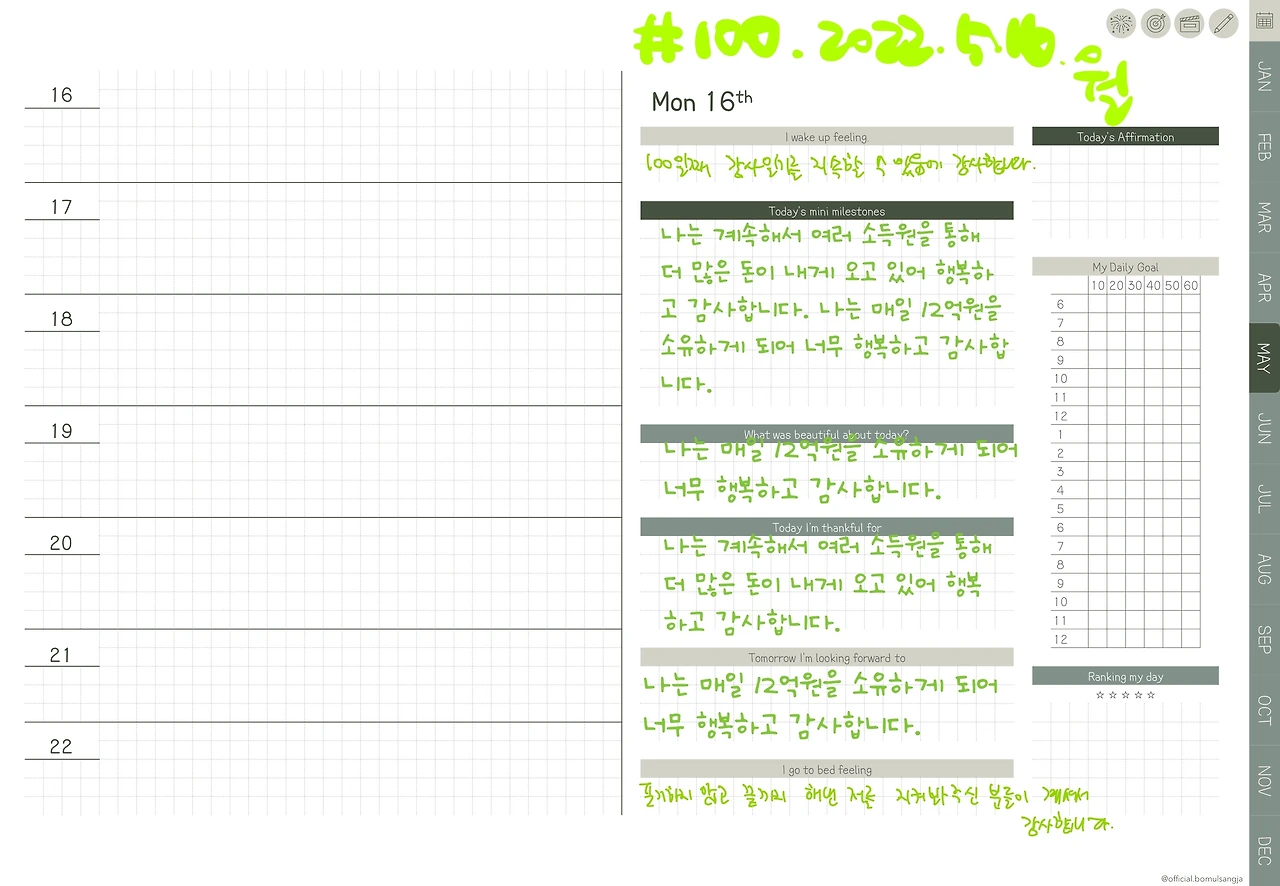 덕분에 100일째 감사일기를 지속할 수 있었습니다.