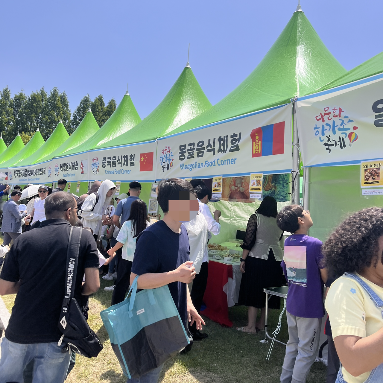 인도, 방글라데시, 파키스탄, 몽골 등의 아시아국가가 눈에 많이 띄었다. 몽골음식체험 부스를 지날 때 어떤 빵을 무료로 시식하게 해 주었다. 아이의 입에 넣어주었더니 맛이 없다며 모두 뱉어버렸다. ‘달고나’에 꽂힌 아이는 달고나 외에는 행사장을 둘러보는 것 자체가 시시했다. 20도를 웃도는 온도로 화창했지만 날이 더웠다. 달고나 노래를 부르며 징징대는 아들에게 누나가 숙제를 끝내고 아빠와 공원으로 와서 네 가족이 모두 만나면 달고나를 사주겠다고 다시 달랬다.