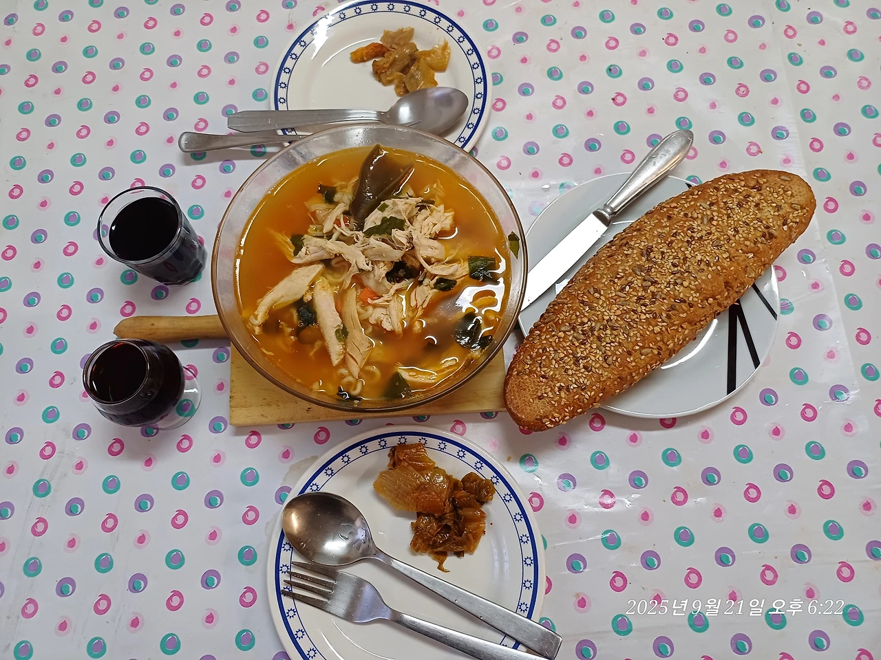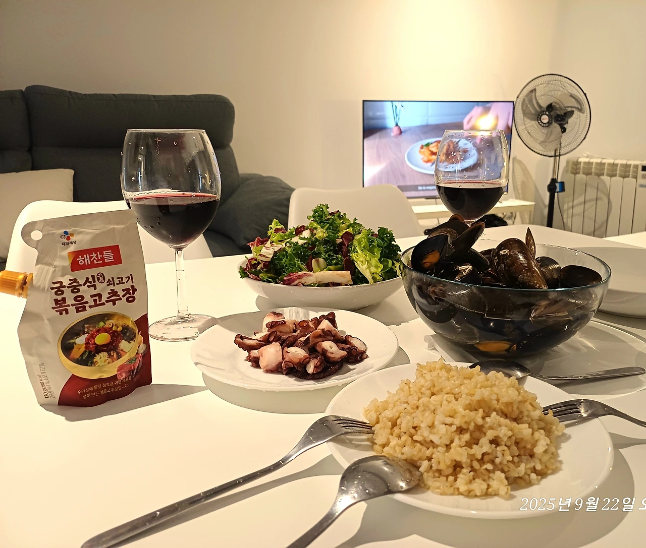마트에서 산 홍합, 뽈뽀(문어),샐러드까지.