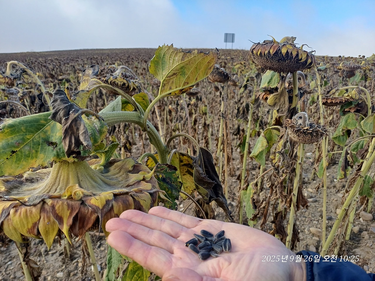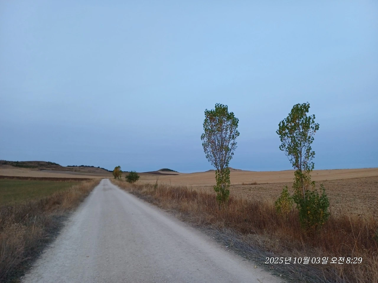 늦가을 평원이라 수확이 끝난 텅 빈 구릉만 바라보며 걷다보니