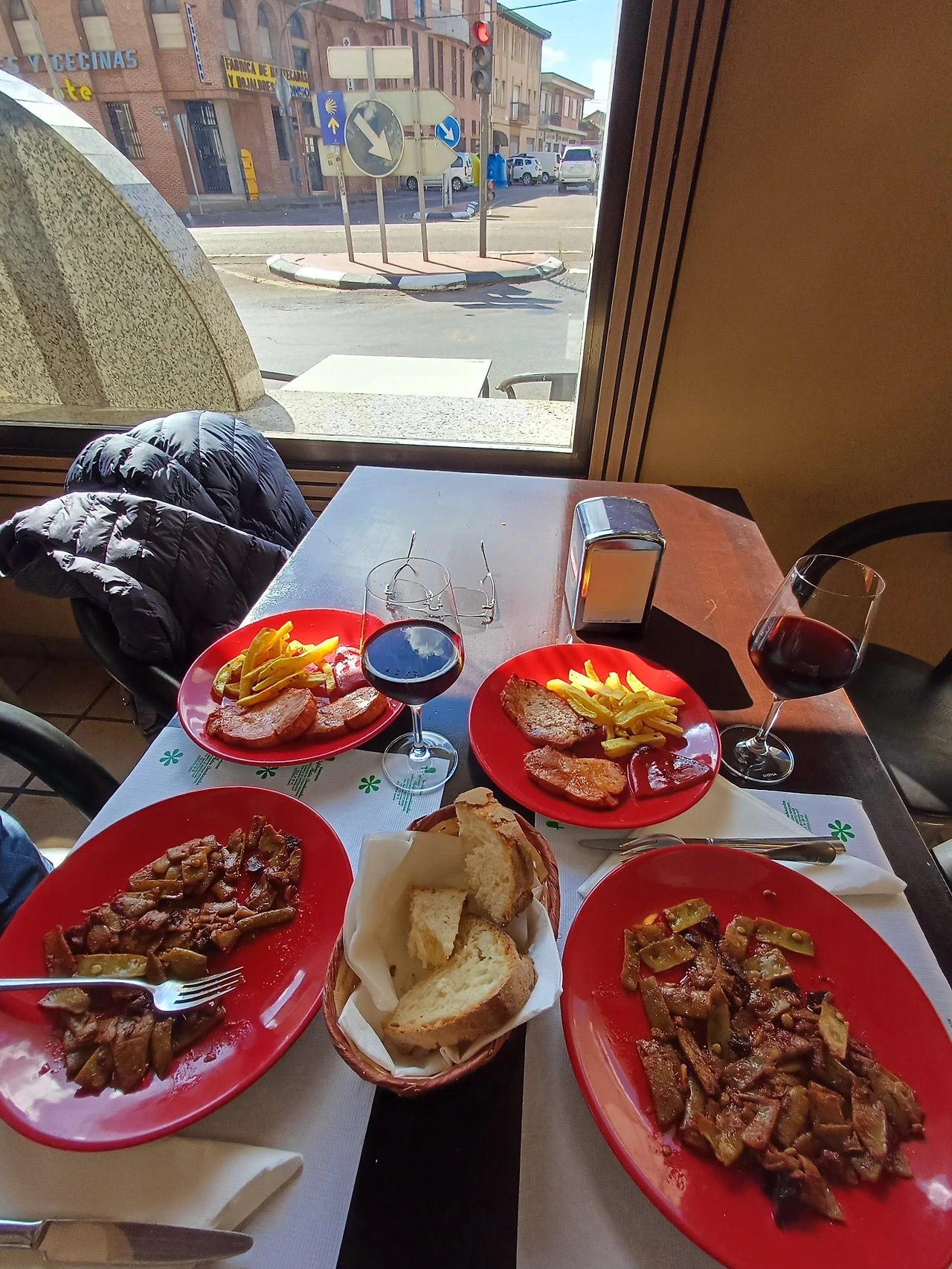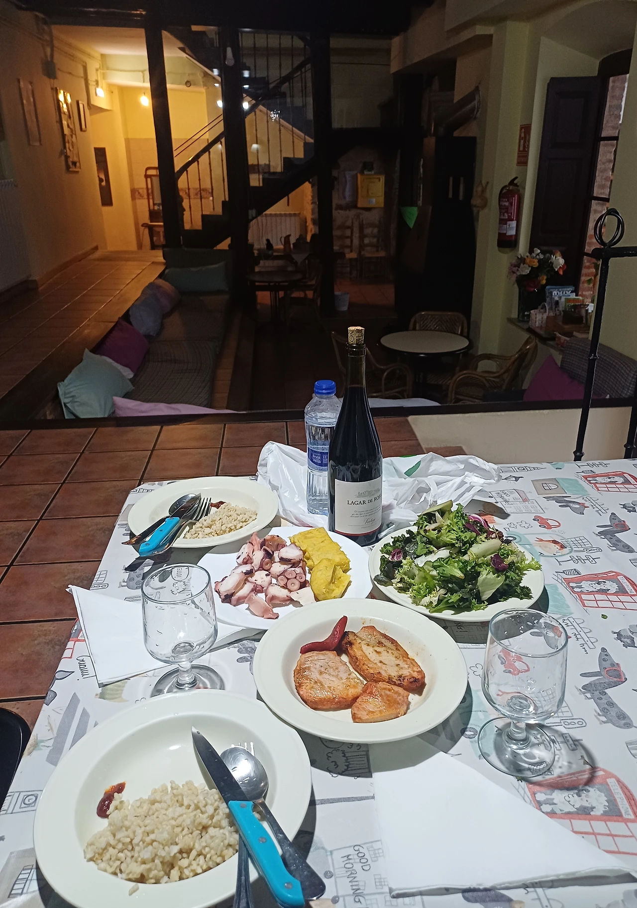 저녁과 다음날 아침은 (알베르게 주방에서) 레온에서 가져온 음식으로