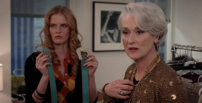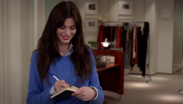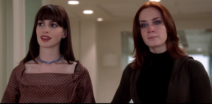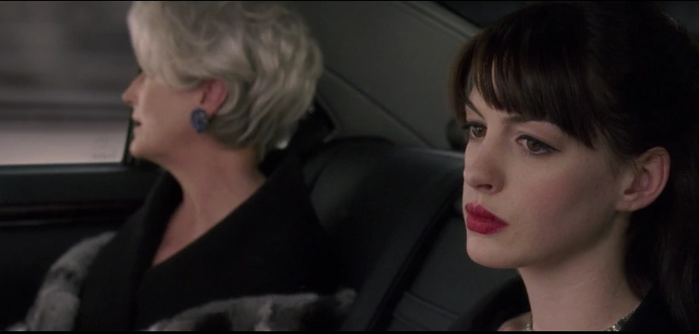 1. 신입사원. 첨엔 좀 촌스럽다. 특히 패션 잡지 회사에 취업하면서 신경을 많이 안쓴 모습이지만 열정이 가득하다. 뭐든 잘 할 수 있을 거 같은 느낌이 든다. 자기 입으로 '나는 똑똑합니다!' 라고 호기롭게 얘기하자 편집장은 그녀를 뽑기로 결정한다.