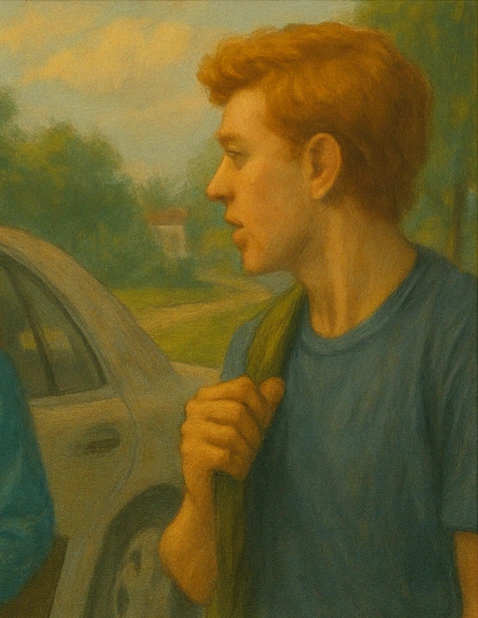 샌디는 말없이 조수석 문을 열고 탔다.
