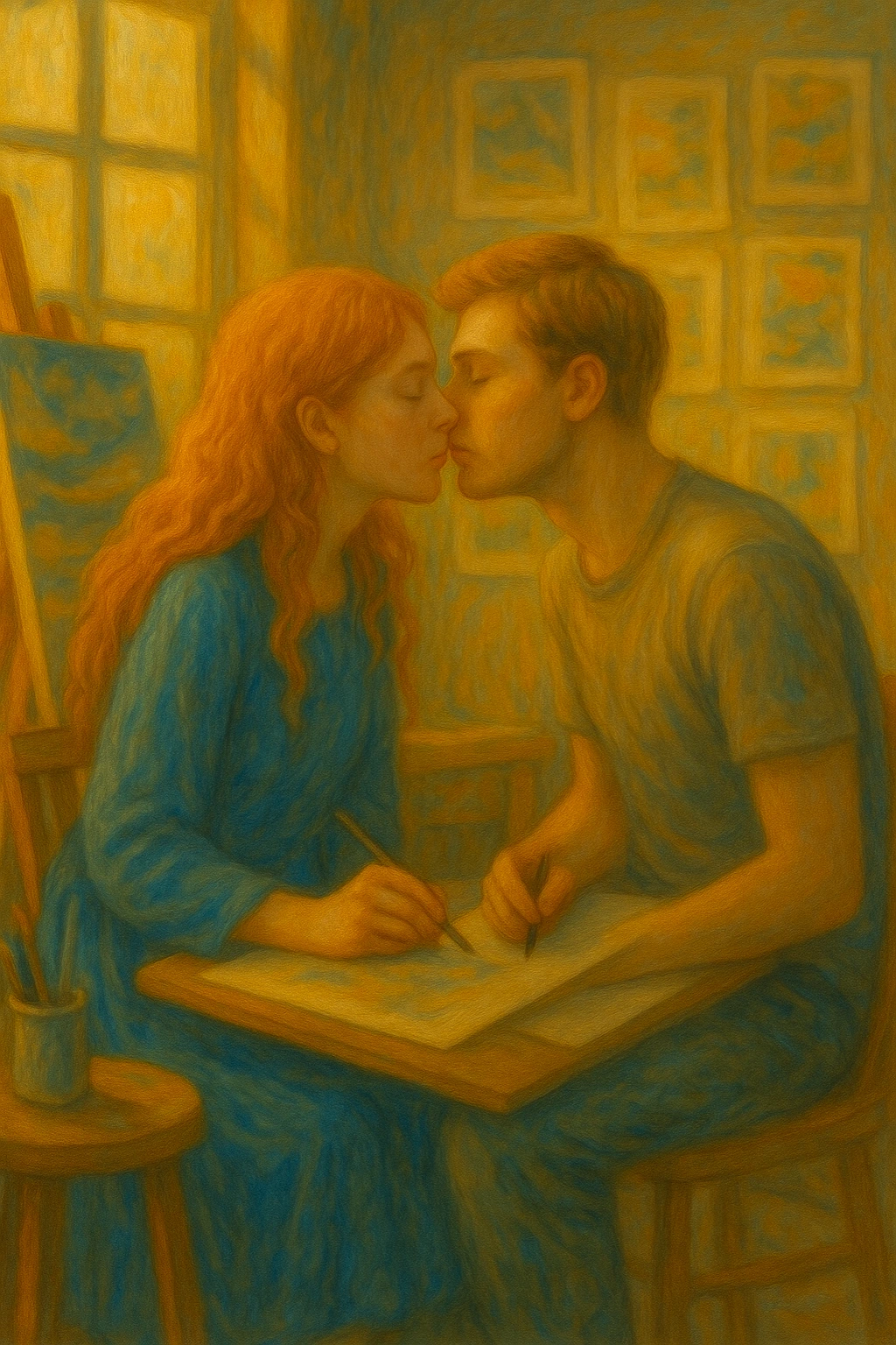 두 사람은 나란히 앉아 각자의 그림을 그렸다.