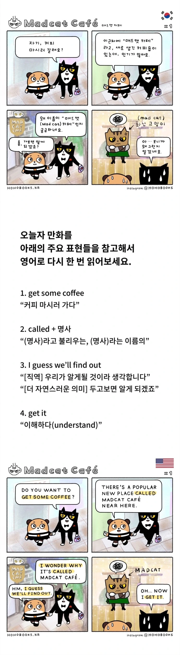 새로운 귀여운 고양이 캐릭터들로 더 가볍고 짧은 내용으로 재미있는 영어 학습을 도모합니다.
