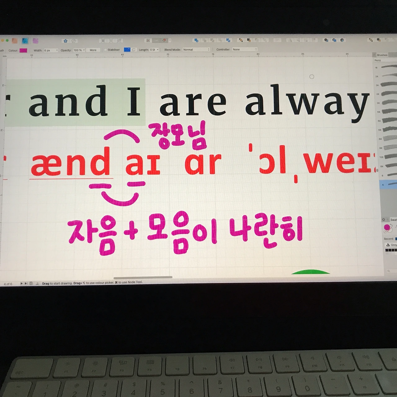 눕기 전에 졸음을 참아가며 일을 해서 그런지 자음과 모음을 쓰다가 '장모님'이라니... 한참 웃다가 지우기 전에 사진을 찍어봤다.