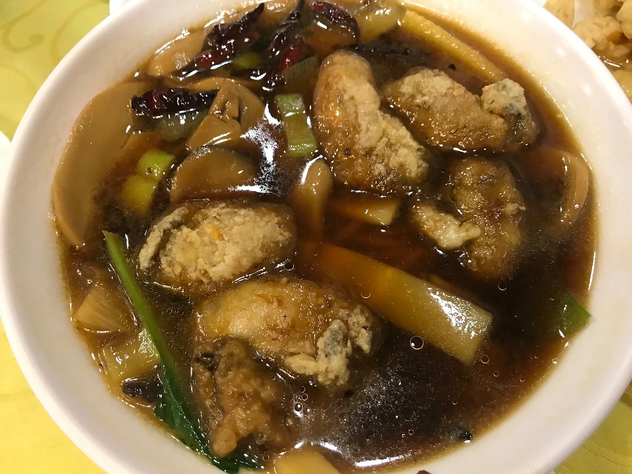 들어온 곳은 분명 중식당인데 약과 조림이라는 신 메뉴를 판매하고 있으니 이리 신묘할 수가! 한 입 털기도 전에 또한 그 맛을 상상해보자니 달달한 약과 맛이 각종 채소, 균류들과 어우러지면 그것 또한 일품이겠거니 했다. 약과의 단단함이 거슬릴 순 있겠으나 유전의 힘으로 탄생한 강철 황니 덕을 이참에 맛보겠구나 했다. 그랬다. 난자완스, 참 맛있었다.