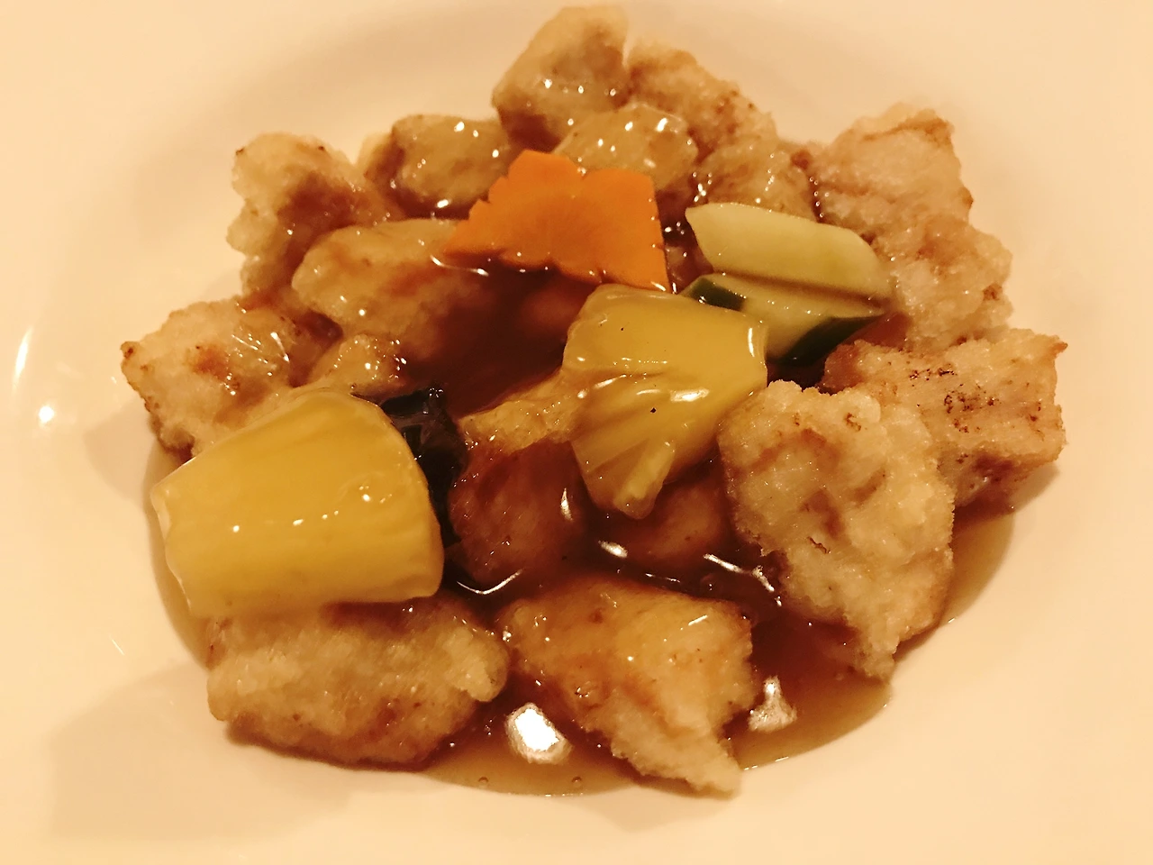 그 뭐더라. 강아진데, 둥글둥글하니 지나가는 이들로 하여금 모두 쳐다보게 만드는 귀여운 그, 짱구에 나오는 흰둥이 같은, 그런 느낌이 나는 탕수육이다. 포실포실이란 표현이 어울리겠다. 식감도 외견과 대동소이한데, 단단하지 않고 부드러운 것이 한 입에도 쏙 들어가고 아주 경기도 안성맞춤이다. 다만 자본주의의 모진 풍파를 비껴가지 못했다는, 그래서 포실포실하고 조막만 한 양임에도 몸값이 아주 대단한 것이 흠이라면 흠일까.