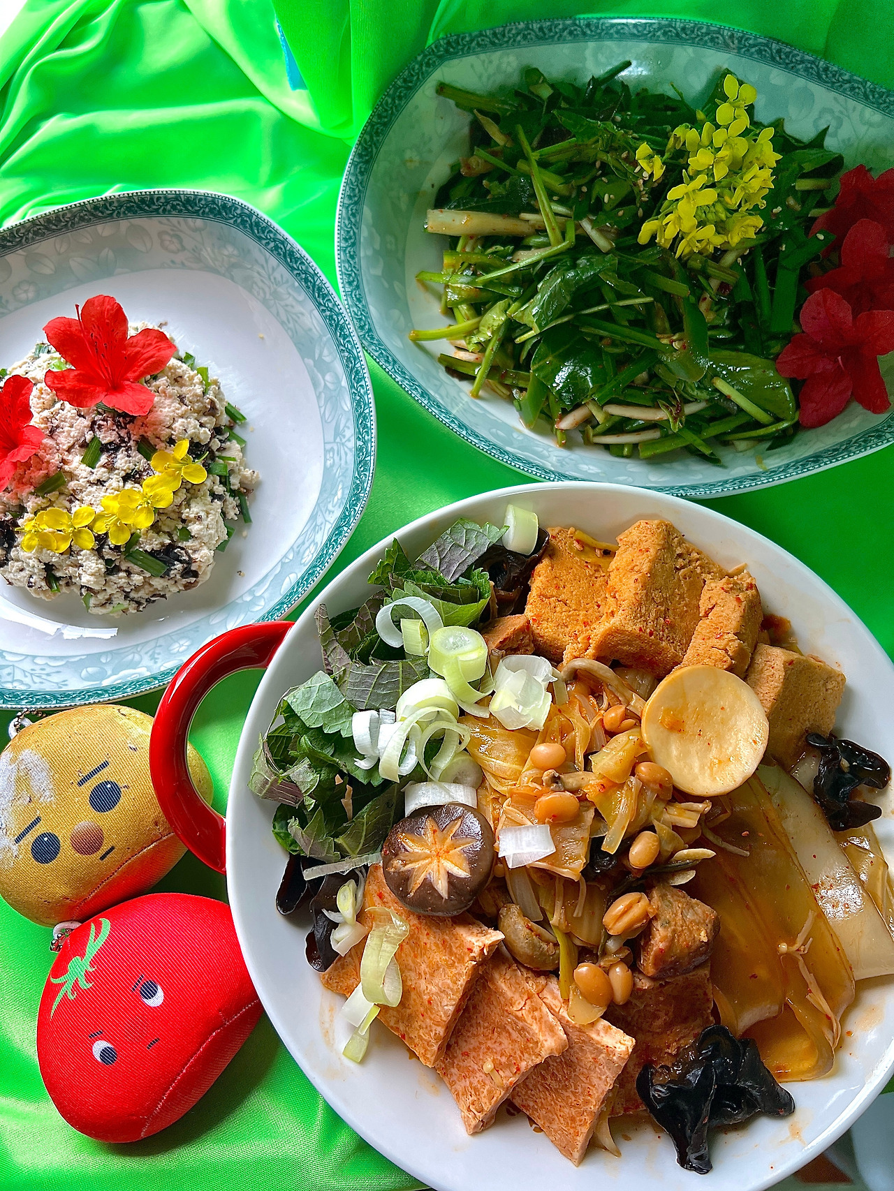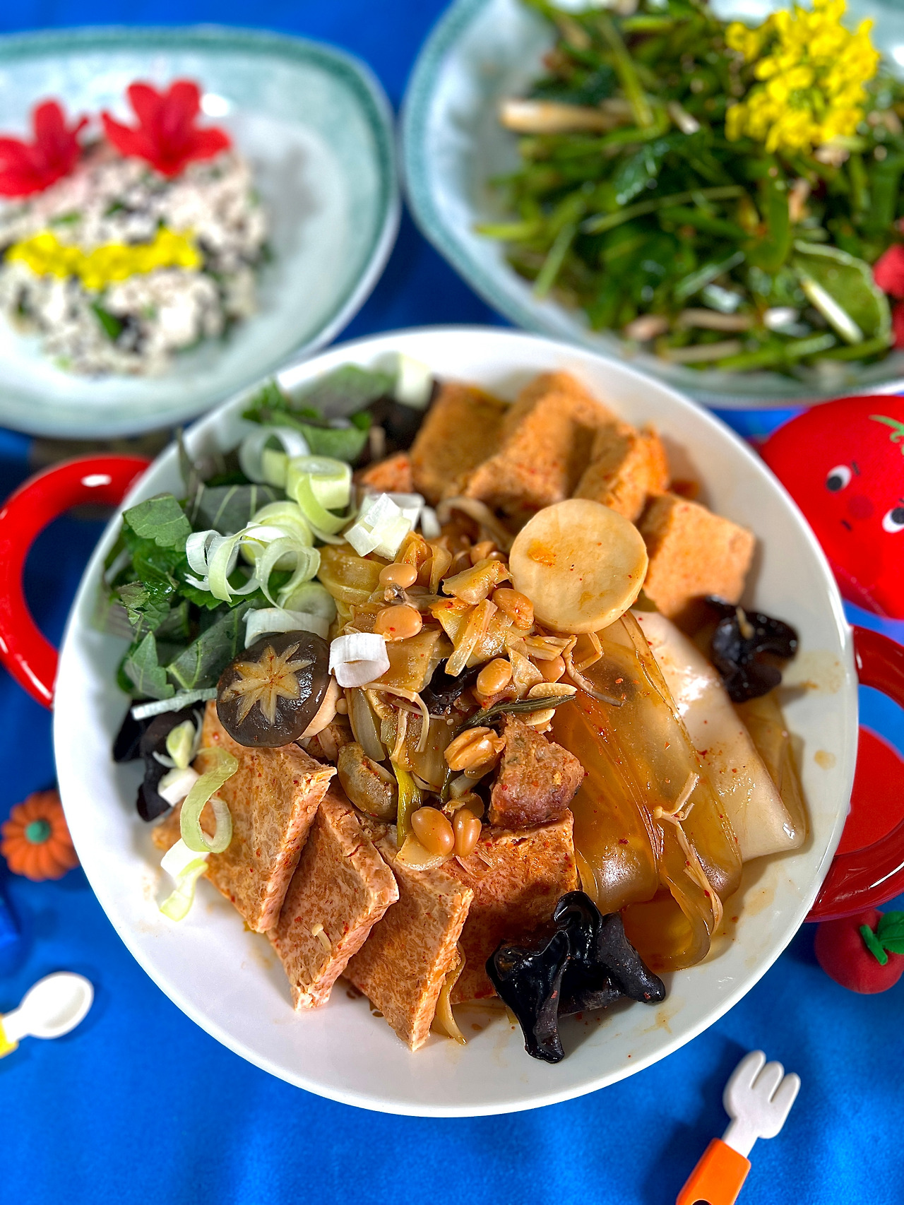 비건 부대볶음과 시금치 부추무침