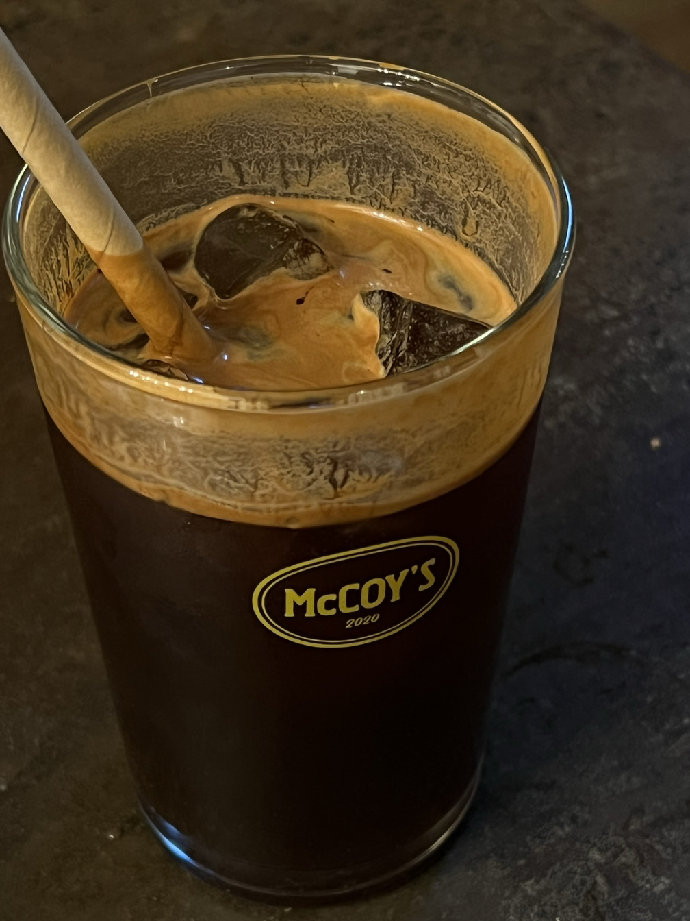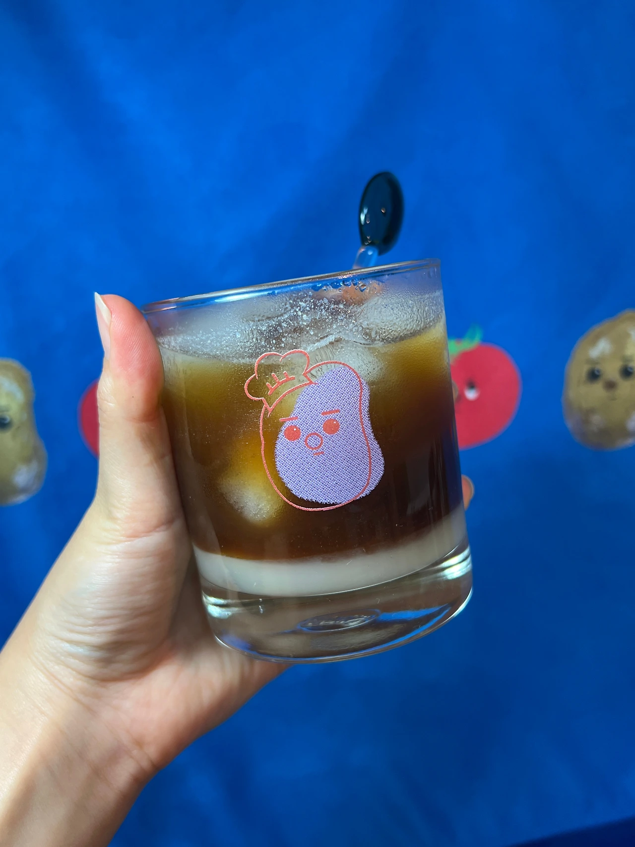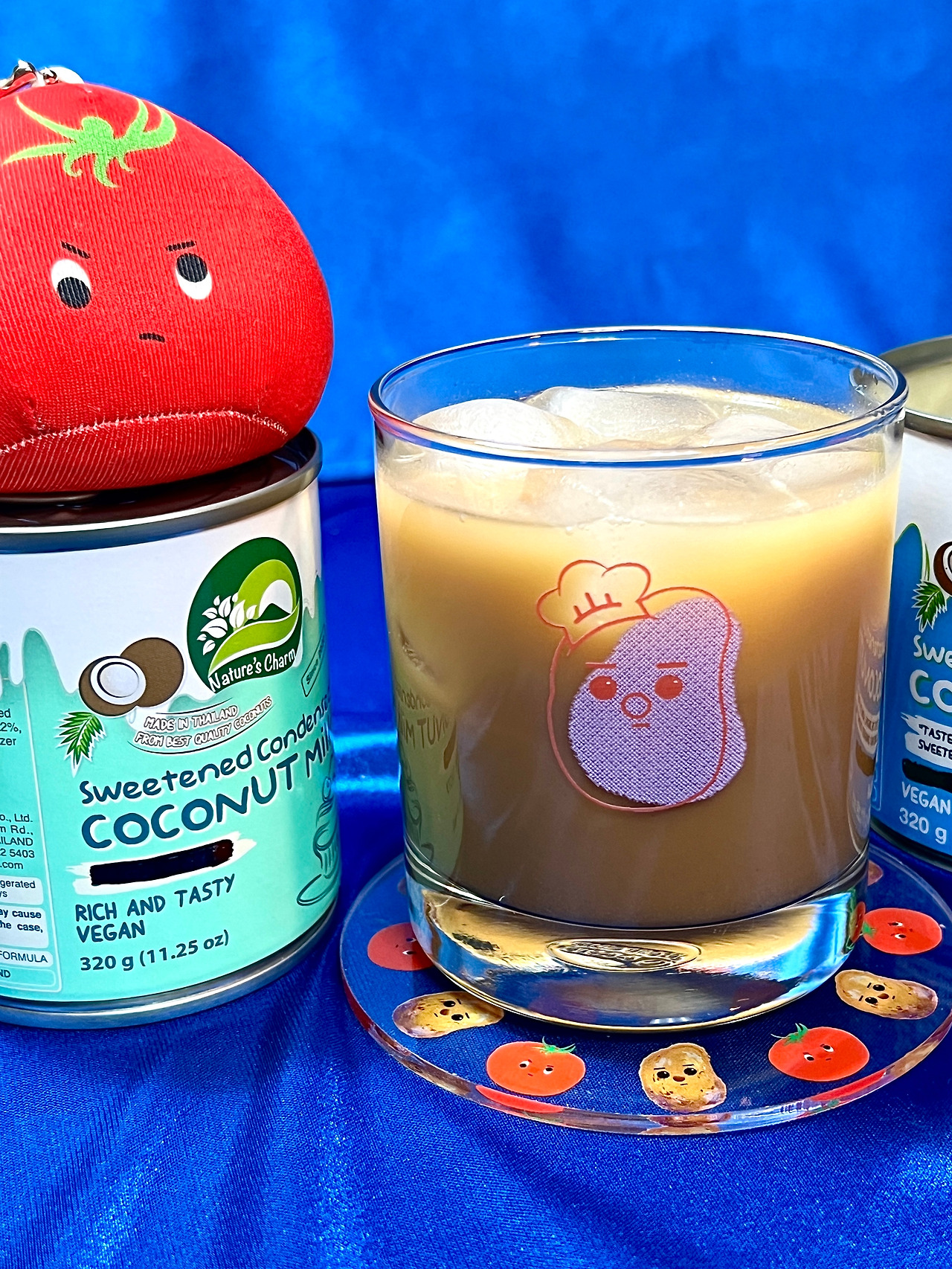 * 재료: 분쇄 원두 2-3T, 네이처스 참 비건 연유, 얼음, 커피 핀