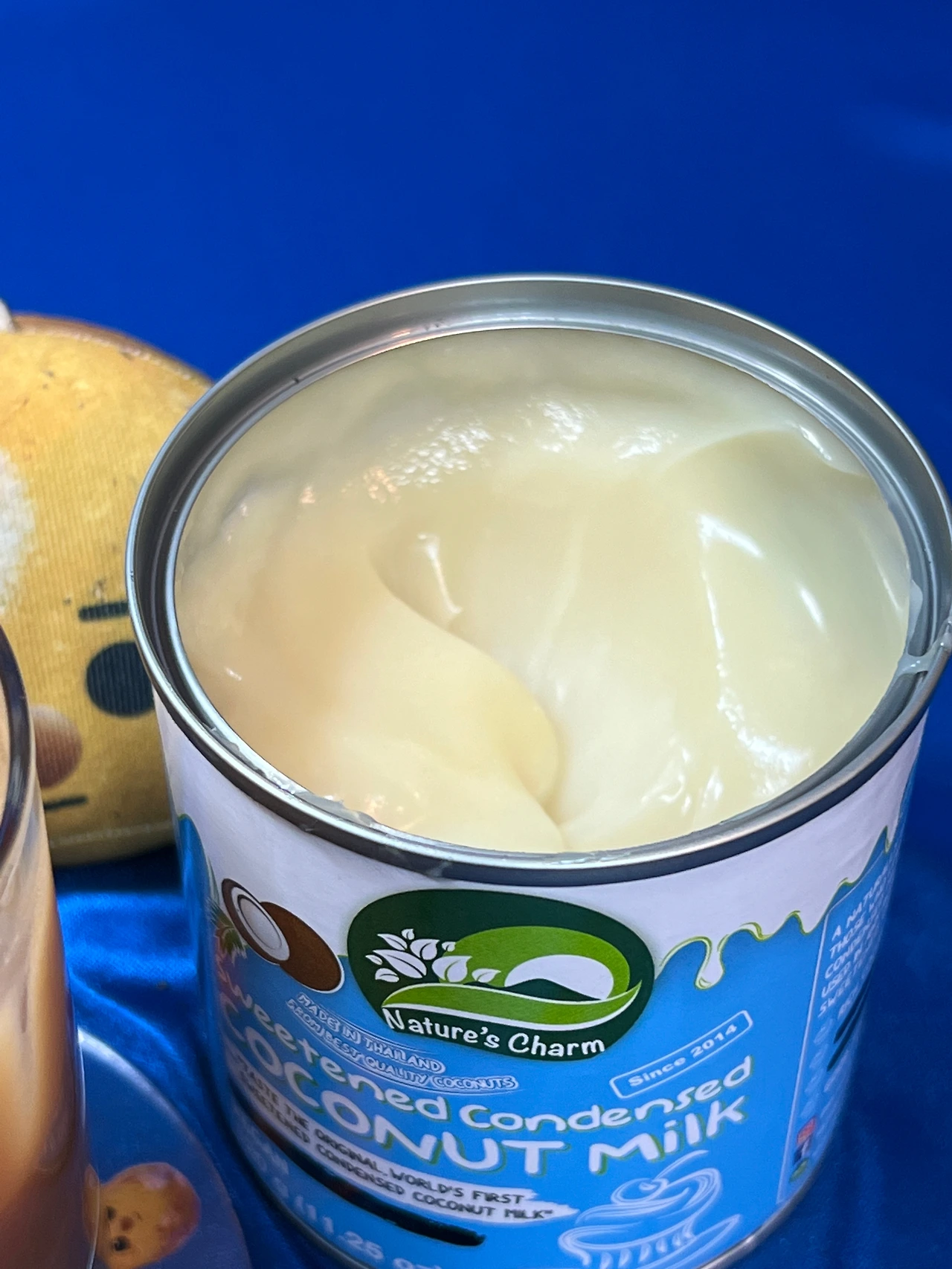 1. 비건 연유를 2-3스푼 컵에 넣는다