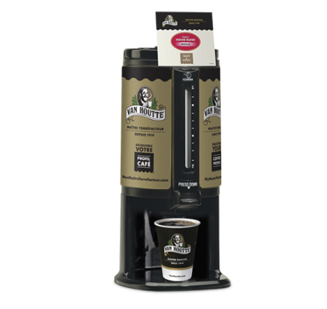 돌이켜보면 당시 회사에서 마신 커피는 캐나다에서 흔히 볼 수 있는 '밴 후트(Van Houtte)' 커피였다. 요즘 기계들은 그 자리에서 커피를 갈아서 커피를 만들어 주기도 하지만 우리 회사의 커피 기계는 봉투에 담긴 커피 가루를 기계에 집어넣은 후 뜨거운 물을 통과시키는, 아주 단순한 형태의 기계였다. 아래 사진에서 볼 수 있는 것처럼 '커피 기계'라고 말하기도 민망한 물건이다. 그저 커피를 여과한 후 보온 통에 담아주는 물건이라고 하는 것이 맞겠다.