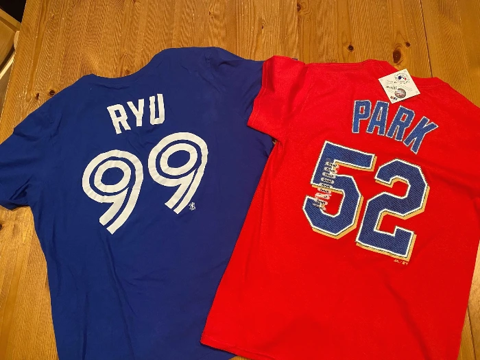 이번에 구입한 류현진 티셔츠와 5년 전 구입한 박병호 티셔츠. 저 티를 사자마자 박병호는 마이너로 내려가 다시 올라오지 못했다. 그래서 아직도 한 번도 입지 않은 새 옷이다.