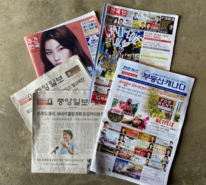 사실 더욱 재미있는 사실은 지난번 토론토에 갔을 때 발생하였다. 미국이나 캐나다의 큰 도시들에 있는 한국 슈퍼를 가보면 출구에 반드시 현지에서 만든 한국 신문들이 놓여있다. 돈을 받고 파는 것은 아니고 무료로 나눠주는 것이기 때문에 대부분 현지 기사를 번역하거나 한국 기사들을 짜깁기 한 수준의 신문들이다. 그래도 공짜이기 때문에 안 집어 올 필요는 없어서 이번에도 이런저런 신문들을 집어왔다.