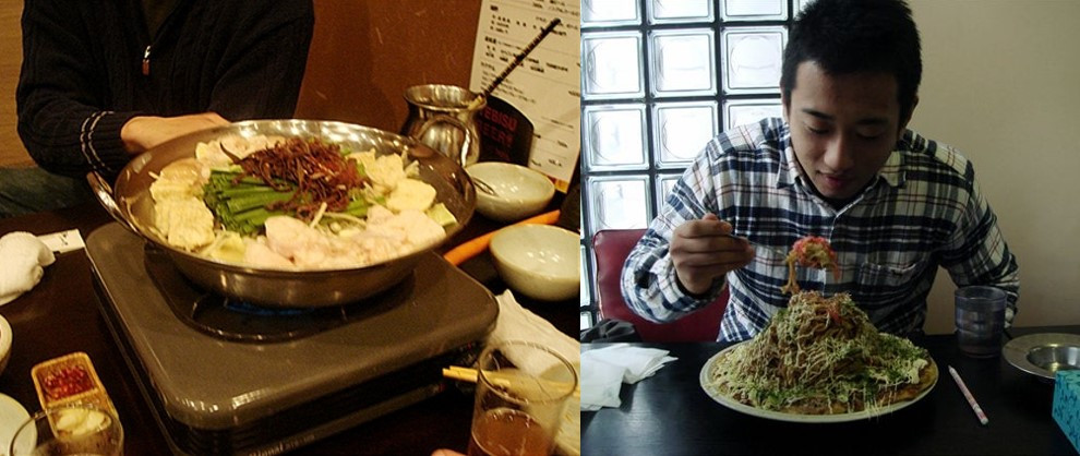 도장에서 내가 머물고 있는 공대 기숙사까지 가려면 한 시간 정도는 걸렸기 때문에(게다가 그중에 마지막 30분은 자전거!!) 처음에는 다른 유도부 사람들과 함께 밥을 먹으러 갔다. 그래서 도장 주변에 있는 식당들을 여기저기 가볼 수 있었는데 다들 맛이 정말 좋았다. 기억에 남는 것은 바로 튀겨서 따끈따끈했던 카라아게(닭튀김), 일본식 중국집의 니라레바(부추와 돼지고기 간을 볶은 것)와 스부타(탕수육), 양도 거대한 히로시마식 오코노미야키, 후쿠오카의 명물 모츠나베(곱창전골과 비슷) 등등 많기도 하다.