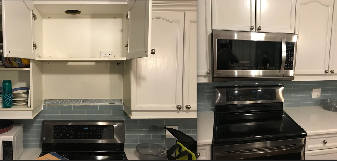 유튜브 영상들을 찾아보니 혼자서 하지 못할 정도의 난이도는 아니었다. 문제는 20kg가 넘는 전자레인지를 혼자서 들어 올리는 동시에 상부의 나사를 조여야 한다는 점이었다. 잘못하다가 떨어뜨리기라도 한다면 전자레인지와 함께 그 아래에 있는 전기레인지까지 박살 날 것이 분명했다. 그렇다고 전기레인지를 빼고 설치하자니 전자레인지를 받쳐 놓을 수가 없어서 이렇게 하기도 저렇게 하기도 힘든 상황이었다.