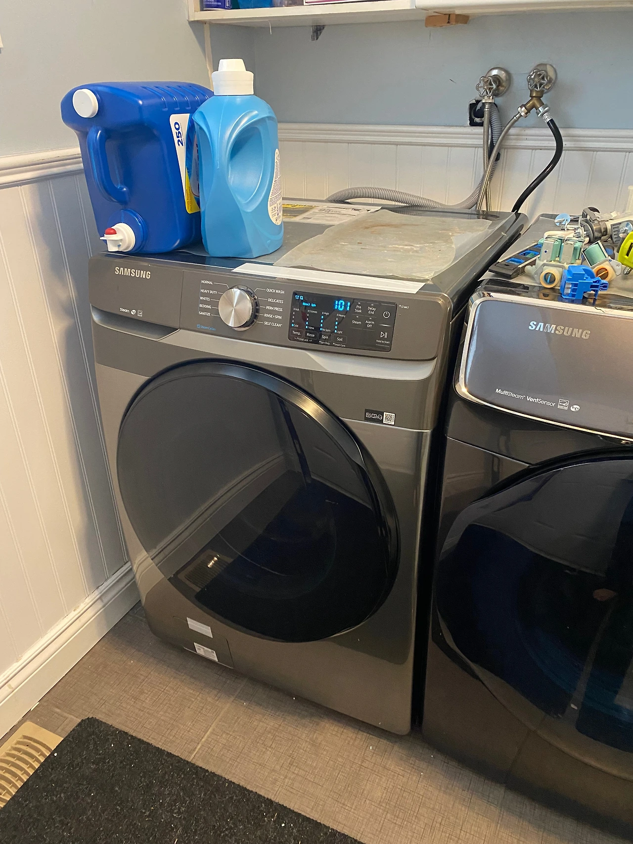 코스트코에는 나를 위해 드럼 세탁기와 통돌이 세탁기가 각각 한 모델씩 준비되어 있었다. 고를 수 있는 선택지가 적다는 것은 단점이었지만 둘 중 하나만 고르면 된다는 것은 장점이었다. 두 개의 가격 차이가 겨우 50불밖에 되지 않았고 집에 있는 드라이어의 색깔을 고려한다면 드럼 세탁기가 나아 보였다. 하지만 문제는 통돌이는 LG, 드럼 세탁기는 삼성이었다는 점이다. 마지막까지 큰 고민에 빠졌지만 하루에 두 번씩 세탁기를 돌리는 우리 집으로서는 물을 적게 쓰는 쪽이 나을 것 같아서 드럼 세탁기로 구입을 하였다.