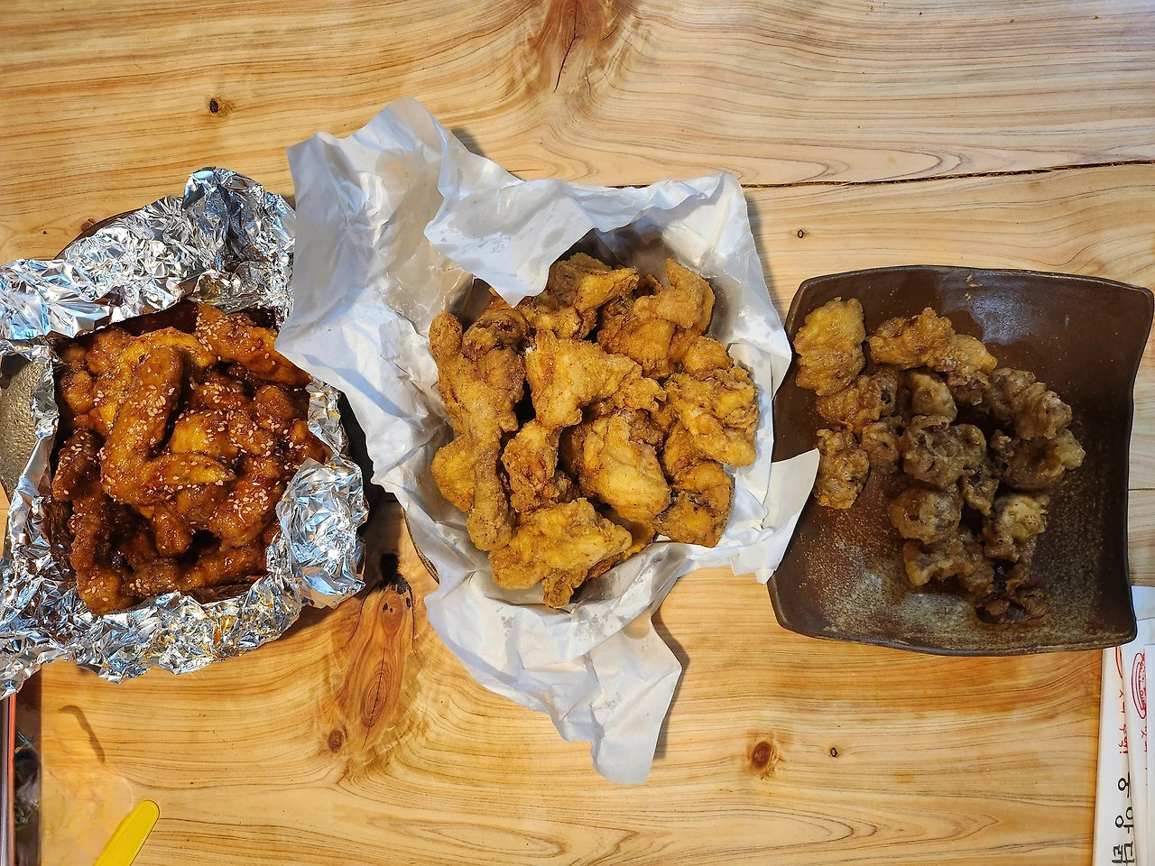 그렇게 새로 들인 가구가 공간에 쏙 맞아 들어간 것을 보니 기분이 좋다. 그러고 피곤한 남편이 걱정돼 곧장 집으로 돌아간다. 돌아가는 길에 저녁거리를 고민하다 아이들이 치킨이 먹고 싶다는 말에 동네에 평이 좋은 오래된 닭집에 주문한다. '중앙닭집'이라는 개성 없는 이름과 달리 저렴한 가격에 양이 아주 많다. 분명 반반치킨을 시켰는데, 두 마리 치킨을 잘못 주셨나 싶을 정도였다. 맛 또한 놀라울 정도로 기본에 충실한 훌륭한 맛이었다. 저렴한 가격에 양과 질이 모두 뛰어난 고수의 치킨을 이런 시골에서 만나다니. 어디서든 환경에 굴하지 않고 소신을 지키는 장인들이 있어 새삼 존경심이 든다.