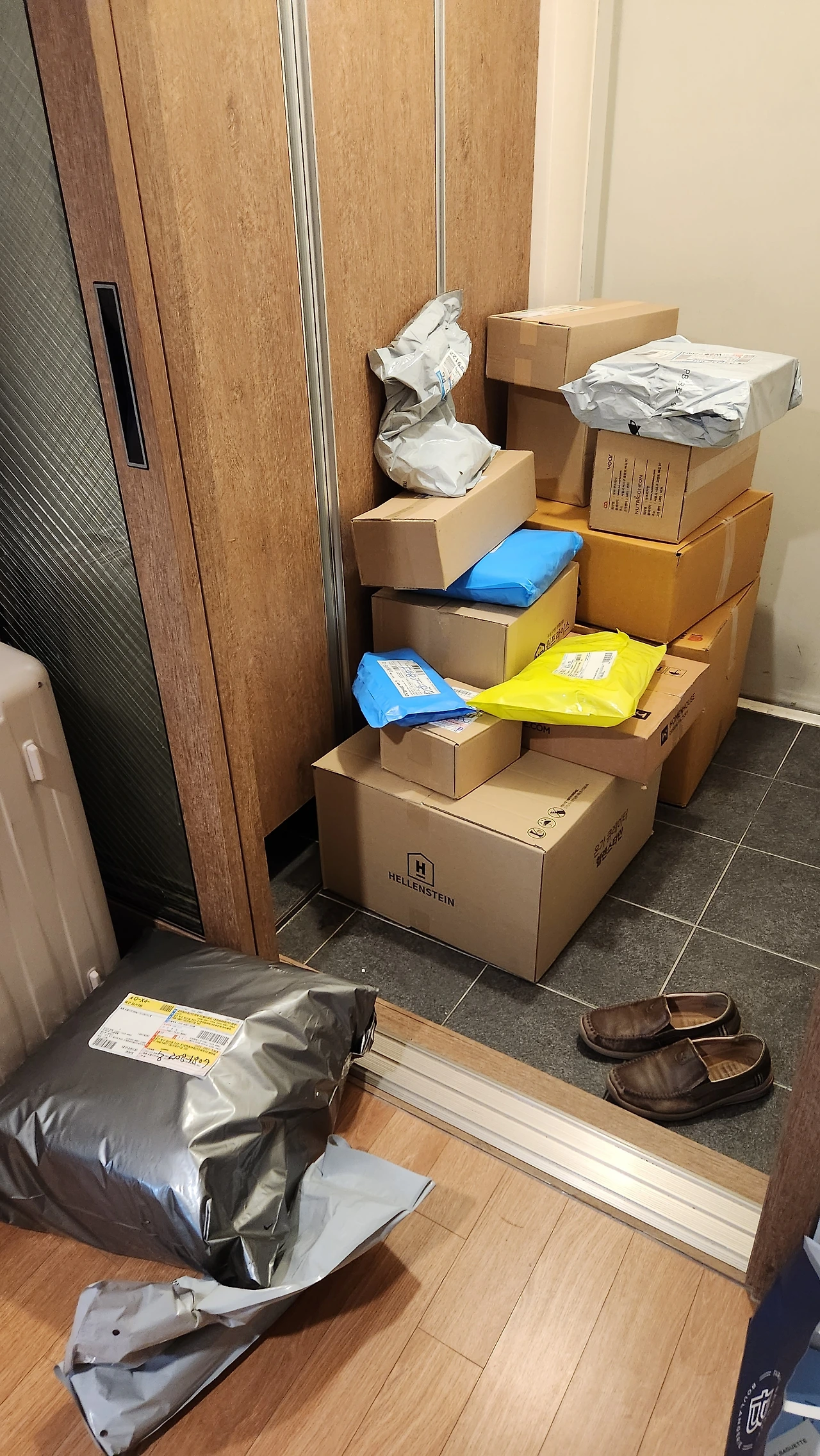 오늘 막 대구에서 수북이 쌓여있던 택배 산을 넘고 온 그는 제주에서 2차 택배 산을 연달아 만난 것이다.