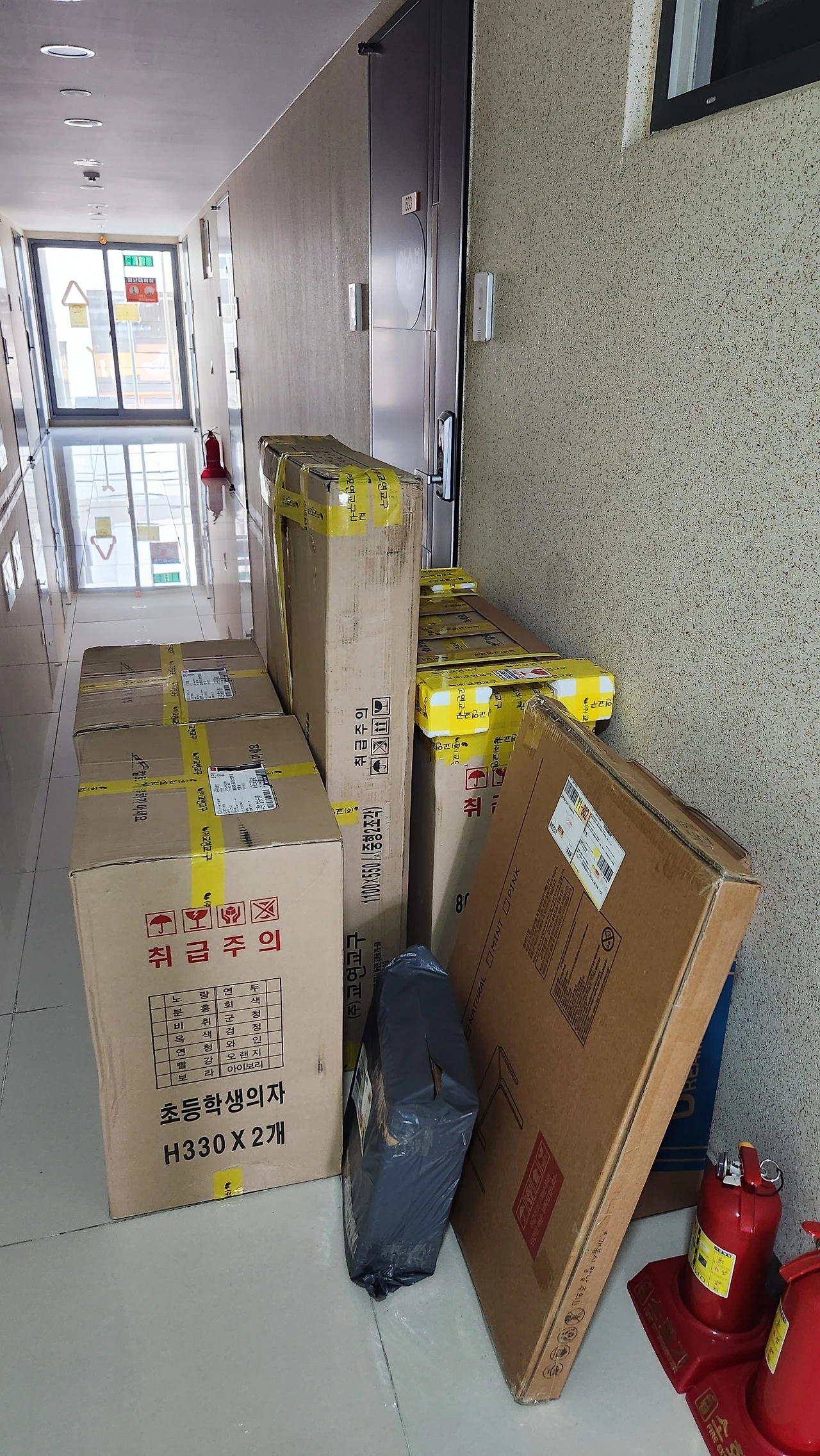 "아 초도물품들이 왔다고 하던데.. 이렇게 많았구나ㅎㅎㅎ 절대 급한 거 아니라 오늘 안 해도 돼~ 아직 오픈하려면 멀었는데~ 천천히 하자~~~ㅎㅎㅎㅎ;;;;;;"