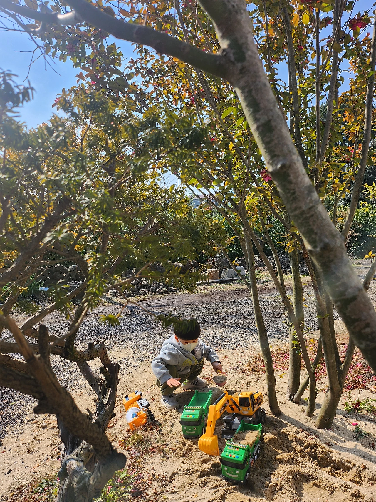 돌아온 아빠와 감동적인 재회도 잠시 아이들의 관심은 온통 놀 생각에 마당으로 간다. 춥지도 않은지 얇은 잠옷 차림으로 마당을 뛰어다닌다. 조금 놀다 들어오겠지 싶어 내버려 두었더니 웬걸 박스에서 장난감들을 찾아 꺼내 아주 본격적으로 놀 태세를 갖춘다. '아.. 저 모습은 최소 두 시간 각이다.' 싶어 외투를 꺼내와 위아래로 단단히 입히고 마스크까지 씌운다. 그제야 마음이 놓인 나는 주방에서 아침밥 준비를 한다.