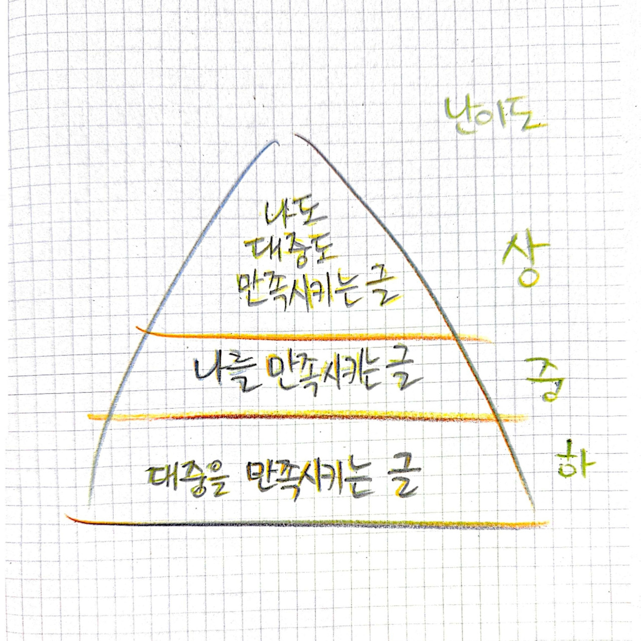 난이도: 대중을 만족시키는 글 < 나를 만족시키는 글 < 나도 대중도 만족시키는 글