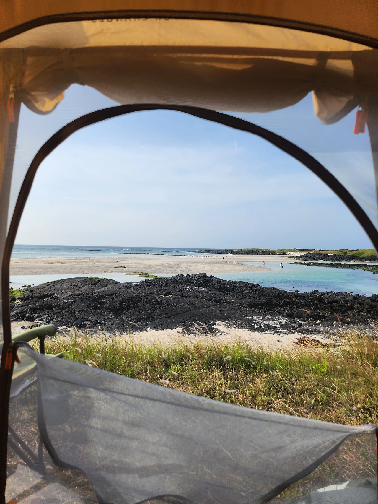 물놀이 후 치킨은 꿀맛이다. 어른이고 아이고 한참 치킨 미식에 푹 빠져 말도 없이 먹는다. 어느 정도 배가 채워지자 아깐 보이지 않던 텐트 밖 풍경이 보인다.